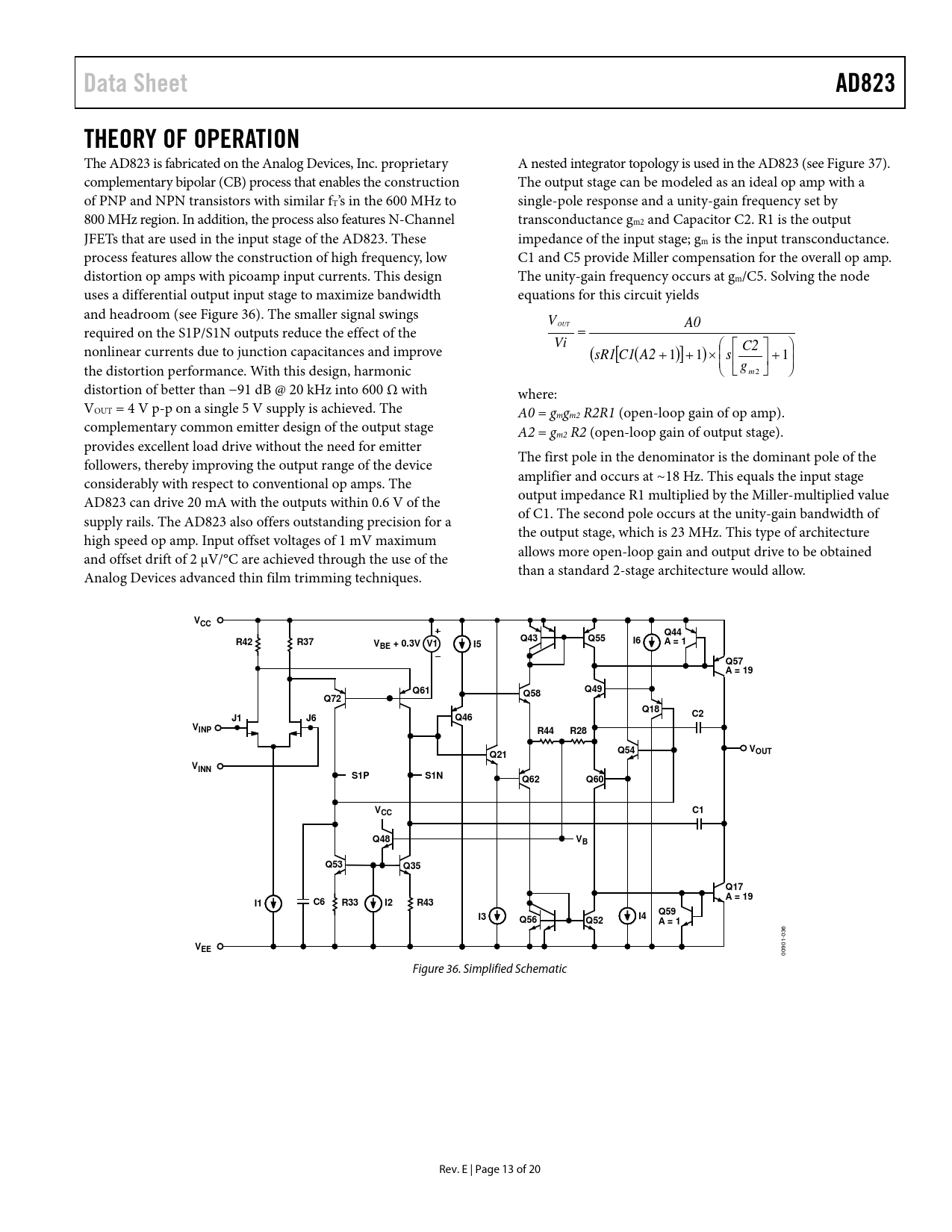 20 /13 — Data Sheet. AD823. THEORY OF OPERATION. VCC. Q44. R42. R37. Q43. Q55. A = …