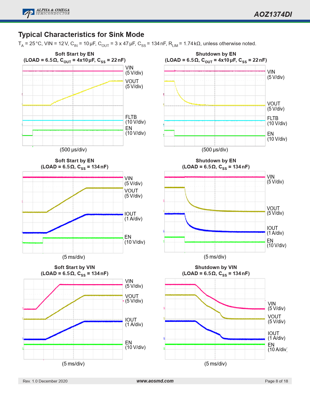 ALPHA & OMEGA. AOZ1374DI. Typical Characteristics for Sink Mode. Soft Start by EN. Shutdown by EN