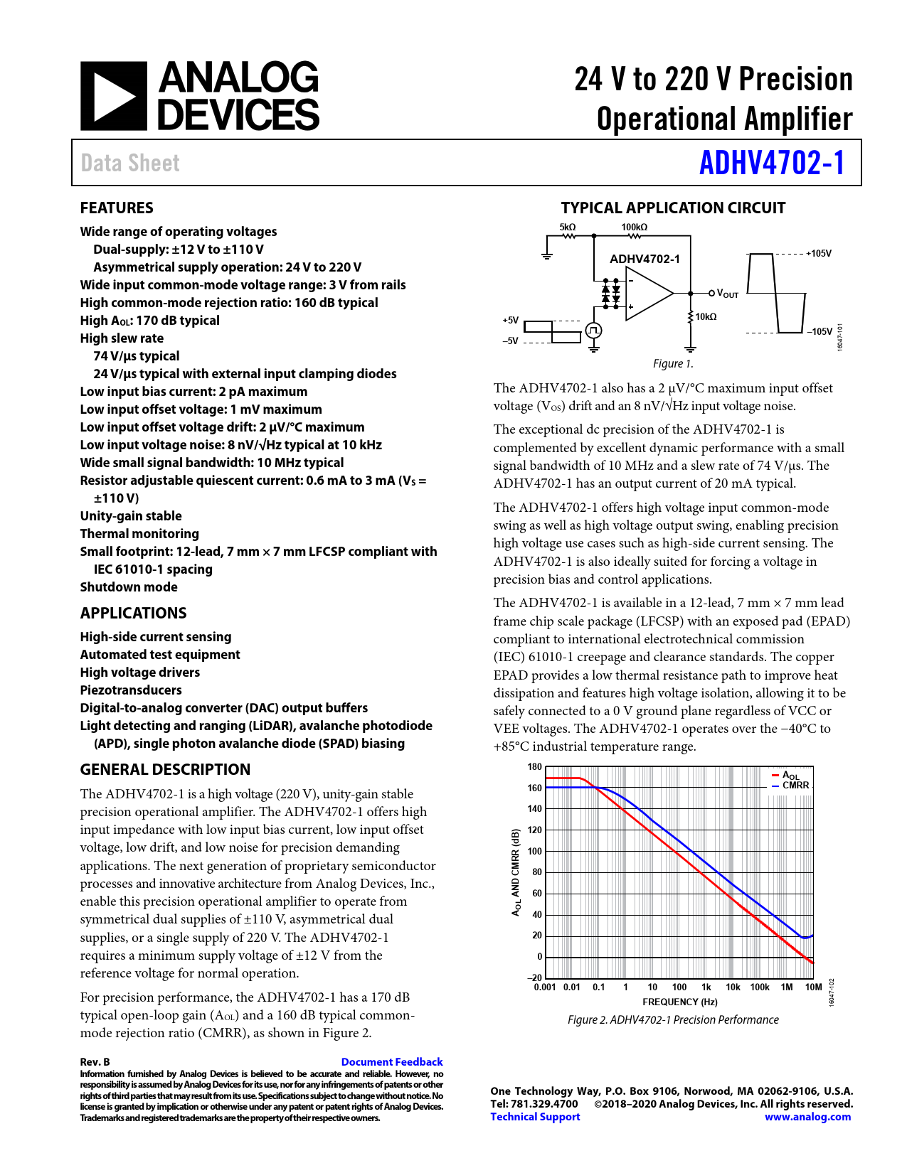 102 For precision performance, the ADHV4702-1 has a 170 dB 47-