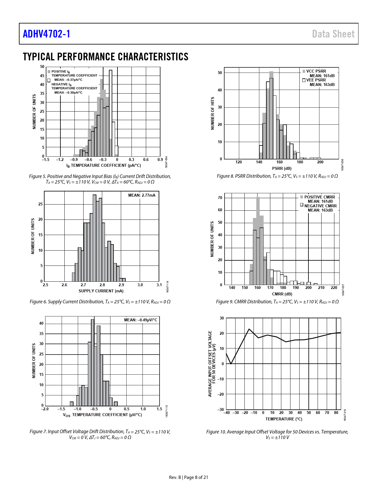 ADHV4702-1. Data Sheet. TYPICAL PERFORMANCE CHARACTERISTICS. POSITIVE I. VCC PSRR. TEMPERATURE COEFFICIENT. MEAN: 161dB