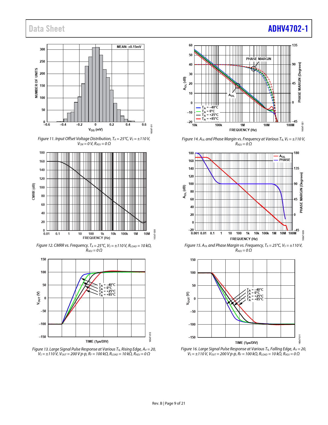 Data Sheet. ADHV4702-1. MEAN: ±0.15mV. 135. 300. PHASE MARGIN. 250. ree. 200. (De. dB (. 150. ARG. 100. HAS. A = –40°C. –10. TA = 0°C. TA = +25°C. TA = +85°C