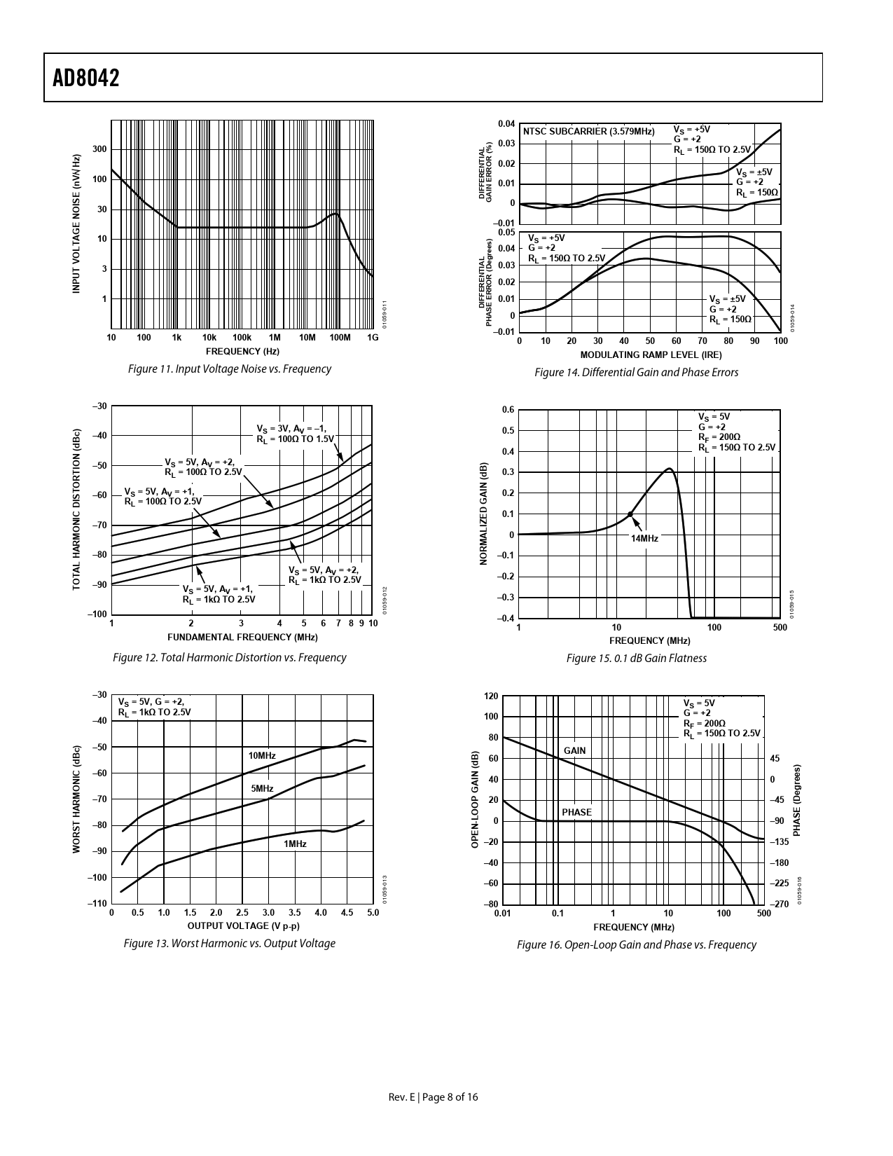 Figure 11. Input Voltage Noise vs. Frequency Figure 14. Differential Gain and Phase Errors