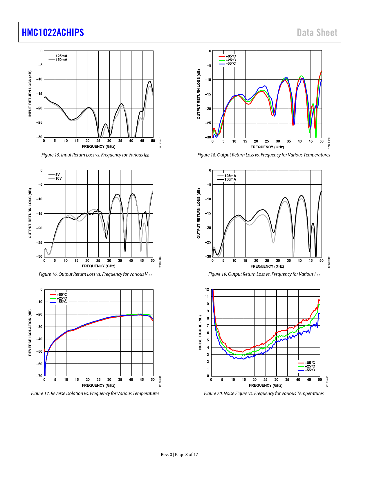 17133- Figure 16. Output Return Loss vs. Frequency for Various VDD Figure 19. Output Return Loss vs. Frequency for Various IDD