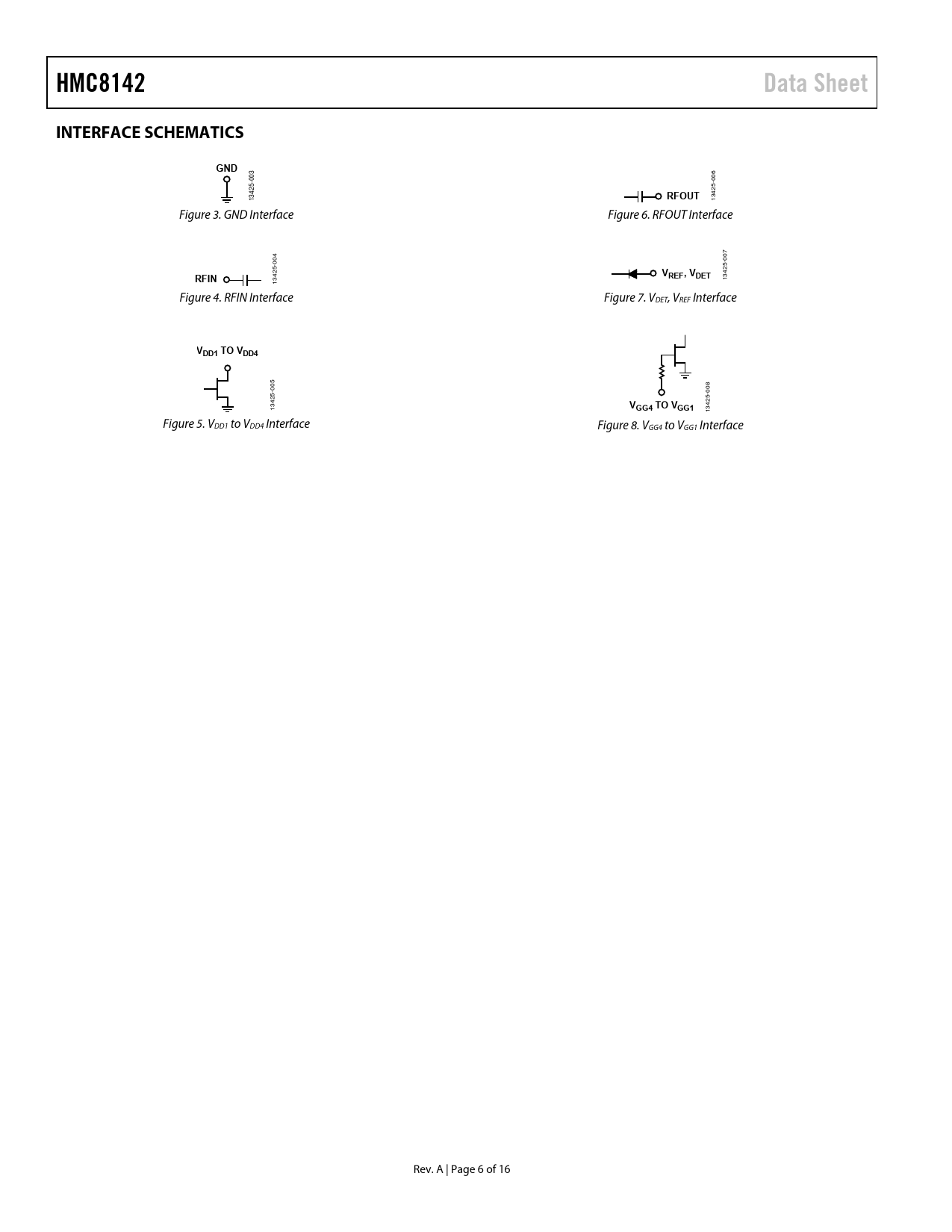 HMC8142. Data Sheet. INTERFACE SCHEMATICS. GND. RFOUT. RFIN. REF, VDET. VDD1 TO VDD4. GG4 TO VGG1