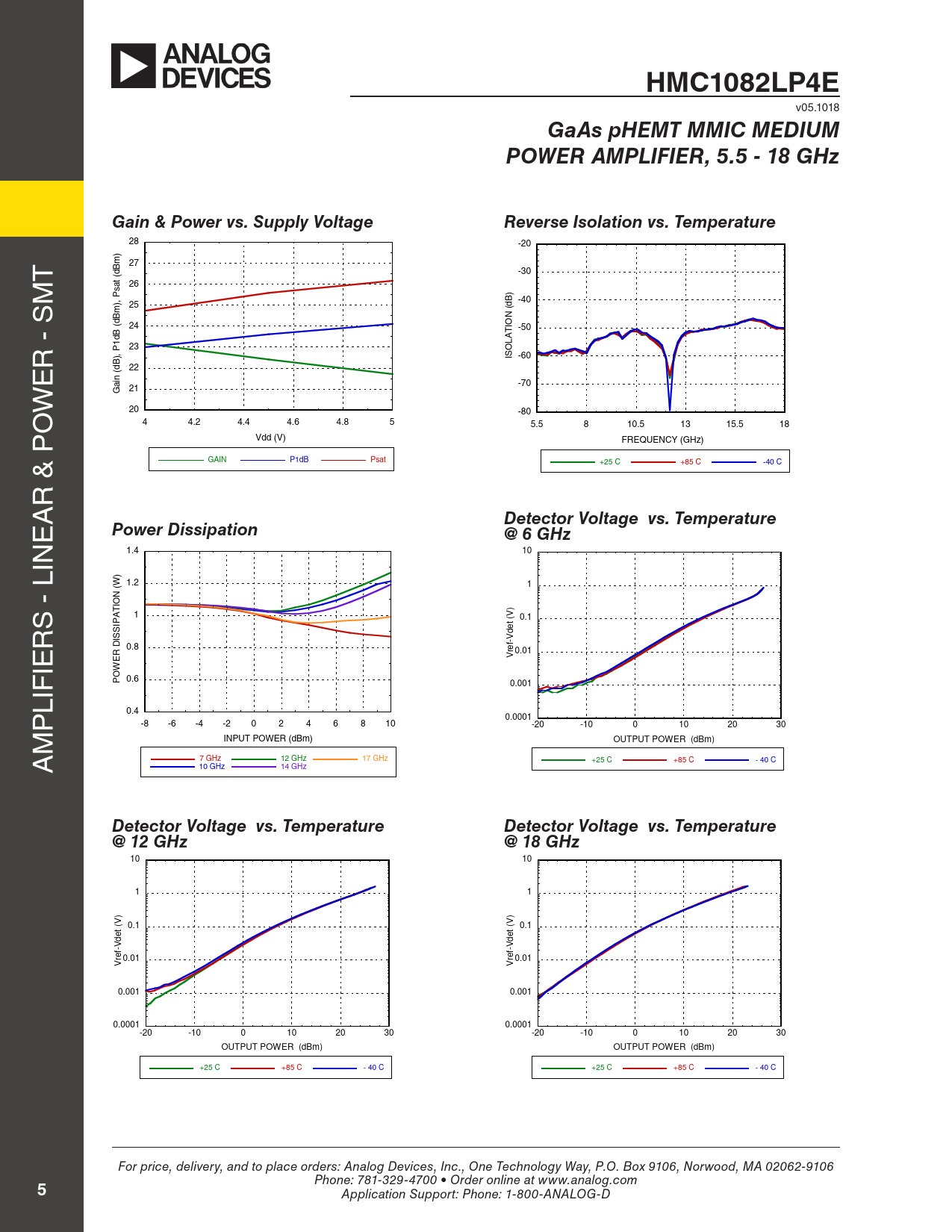 Páginas / Página10 / 5 — HMC1082LP4E. GaAs pHEMT MMIC MEDIUM. POWER AMPLIFIER, 5.5 - 18 GHz. Gain …