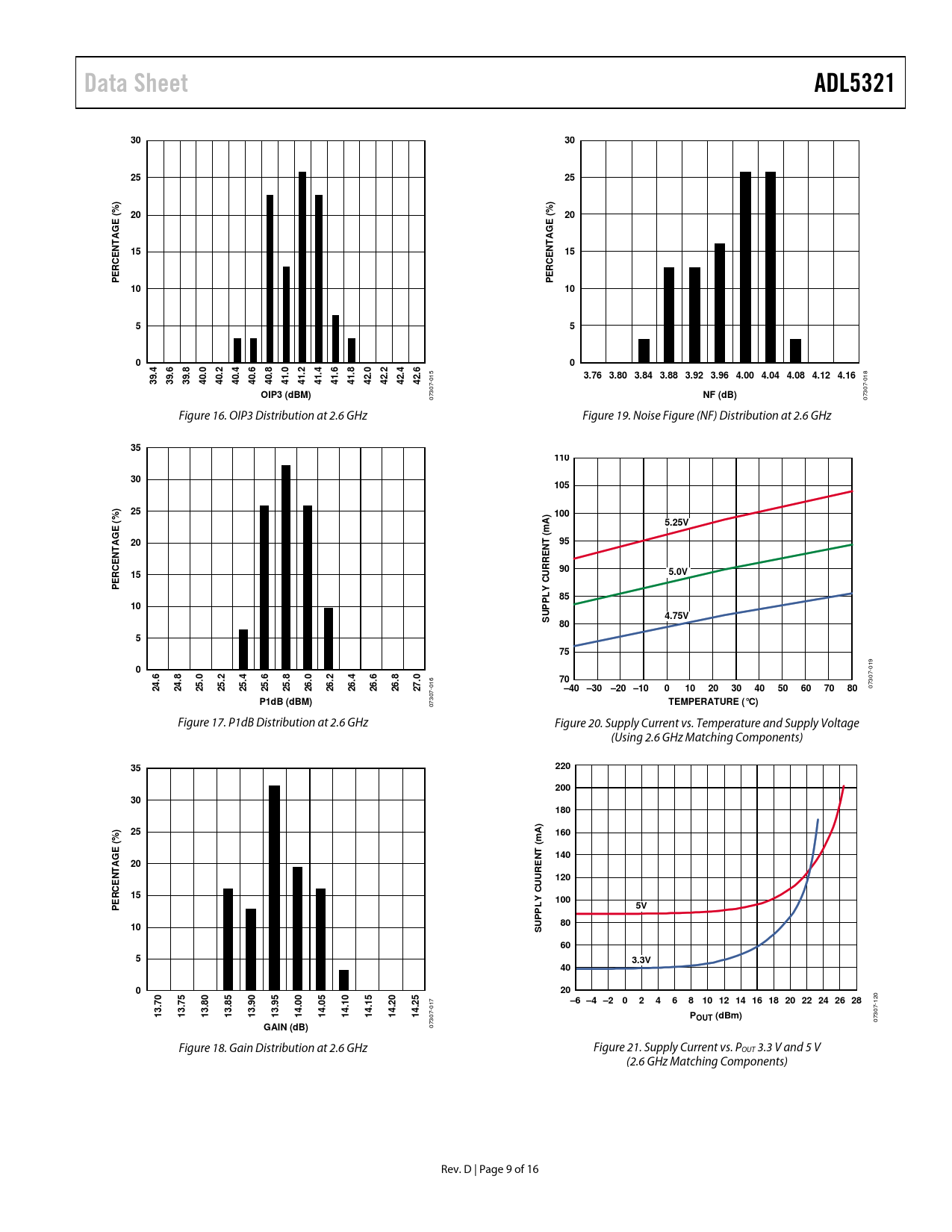 07307- Figure 17. P1dB Distribution at 2.6 GHz Figure 20. Supply Current vs. Temperature and Supply Voltage (Using 2.6 GHz Matching Components)