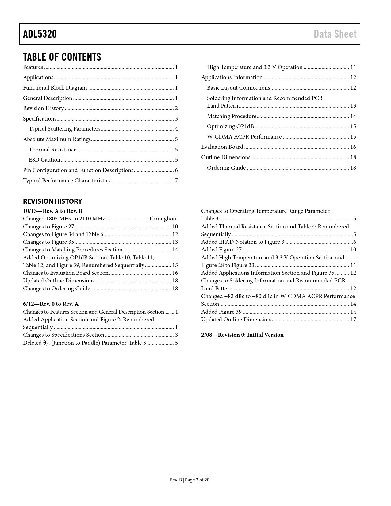 ADL5320 Data Sheet TABLE OF CONTENTS REVISION HISTORY 10/13—Rev A to Rev B 6/12—Rev 0 to Rev A