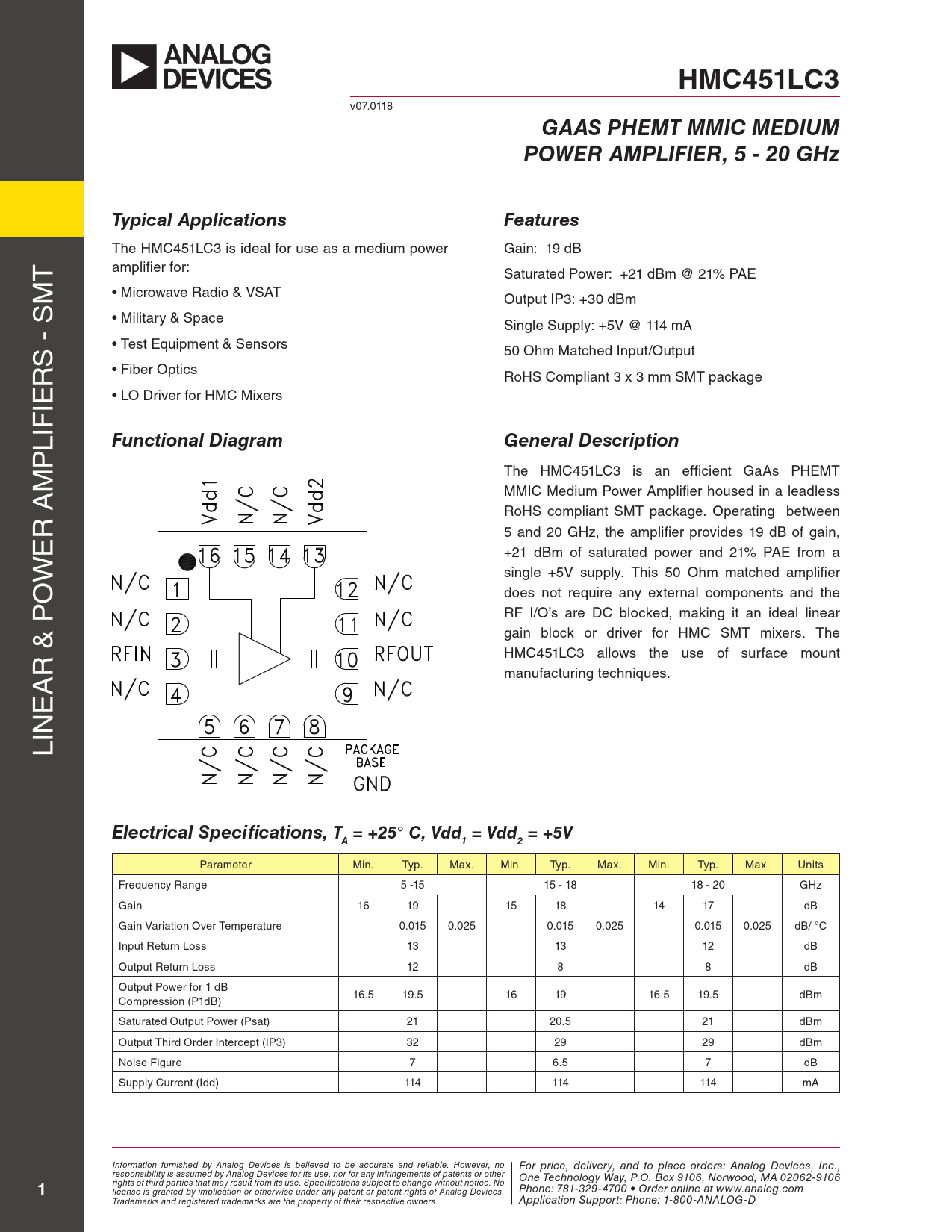 Datasheet HMC451LC3 Analog Devices