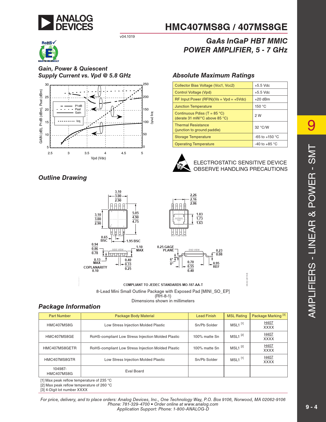 Datasheet HMC407MS8G, 407MS8GE (Analog Devices) - 4