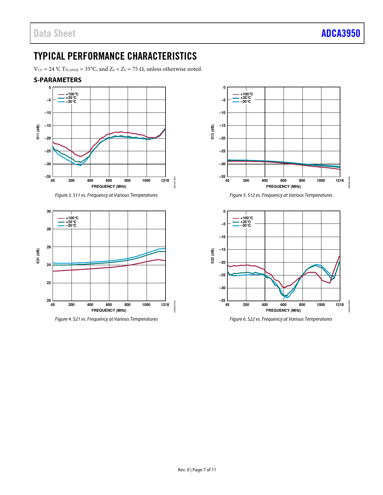 Data Sheet ADCA3950 TYPICAL PERFORMANCE CHARACTERISTICS S-PARAMETERS +100°C +35°C –30°C –10 –15 11 ( 12 ( –20 –25 –30 –35 200 400 600 800