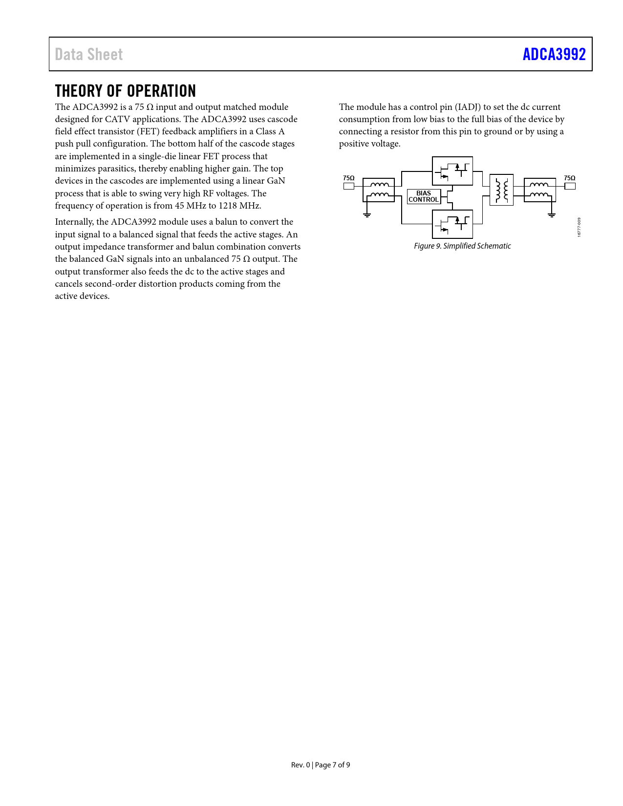 Páginas / Página9 / 7 — Data Sheet. ADCA3992. THEORY OF OPERATION. 75Ω. BIAS. CONTROL