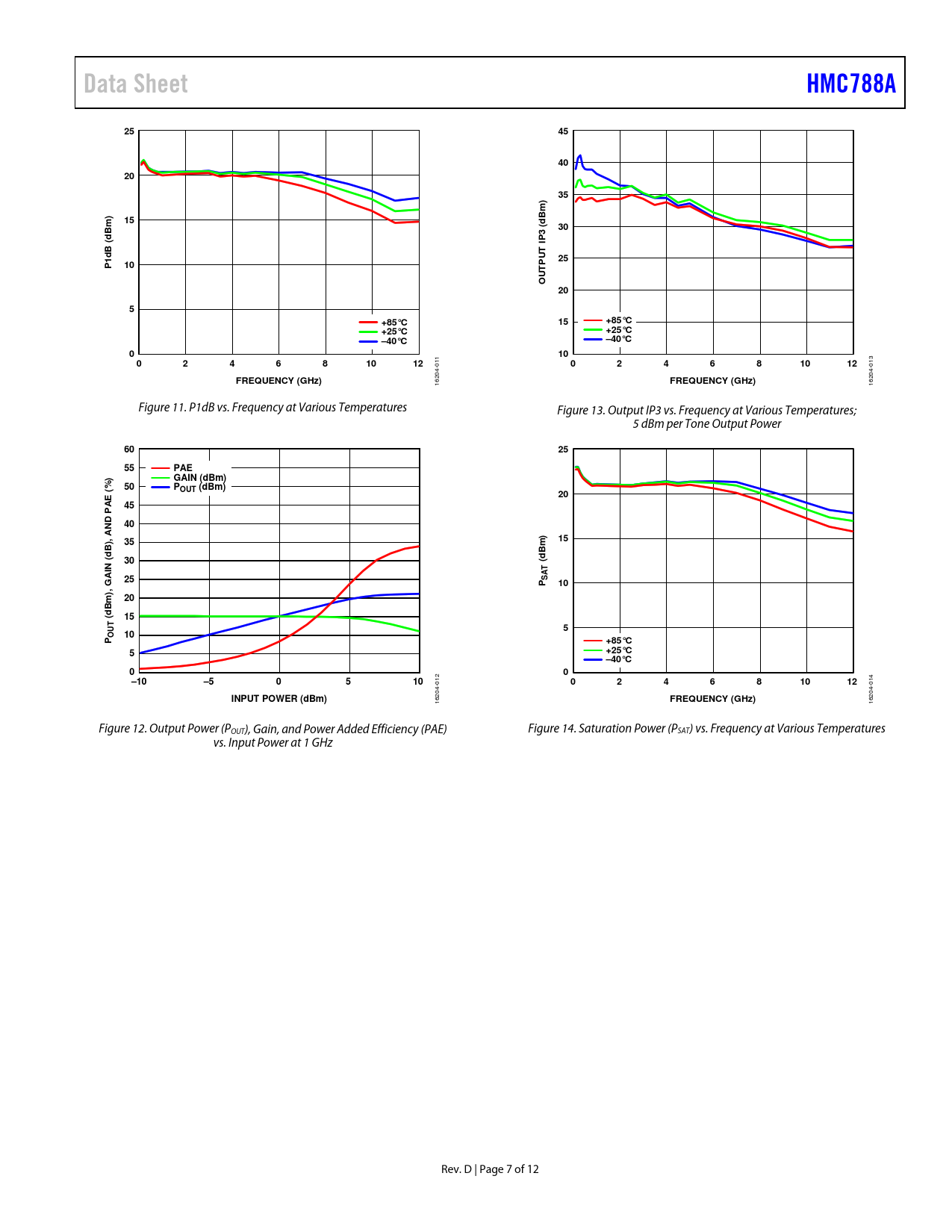 12 /7 — Data Sheet. HMC788A. Bm). 3 (. P I. B ( 1d. P UT O. +85°C. +25°C. –40°C. …