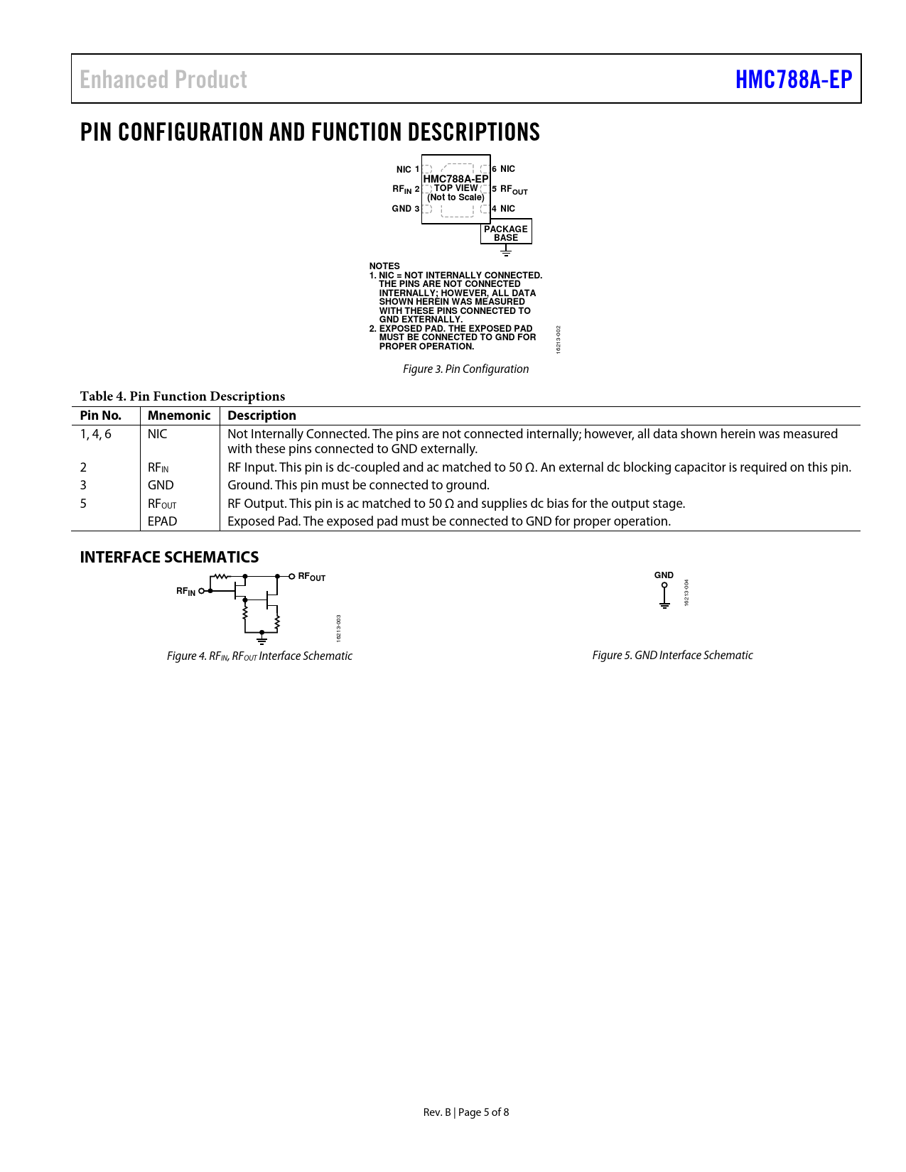 Enhanced Product HMC788A-EP PIN CONFIGURATION AND FUNCTION DESCRIPTIONS NIC 1 6 NIC TOP VIEW RFOUT (Not to Scale) GND 3 4 NIC