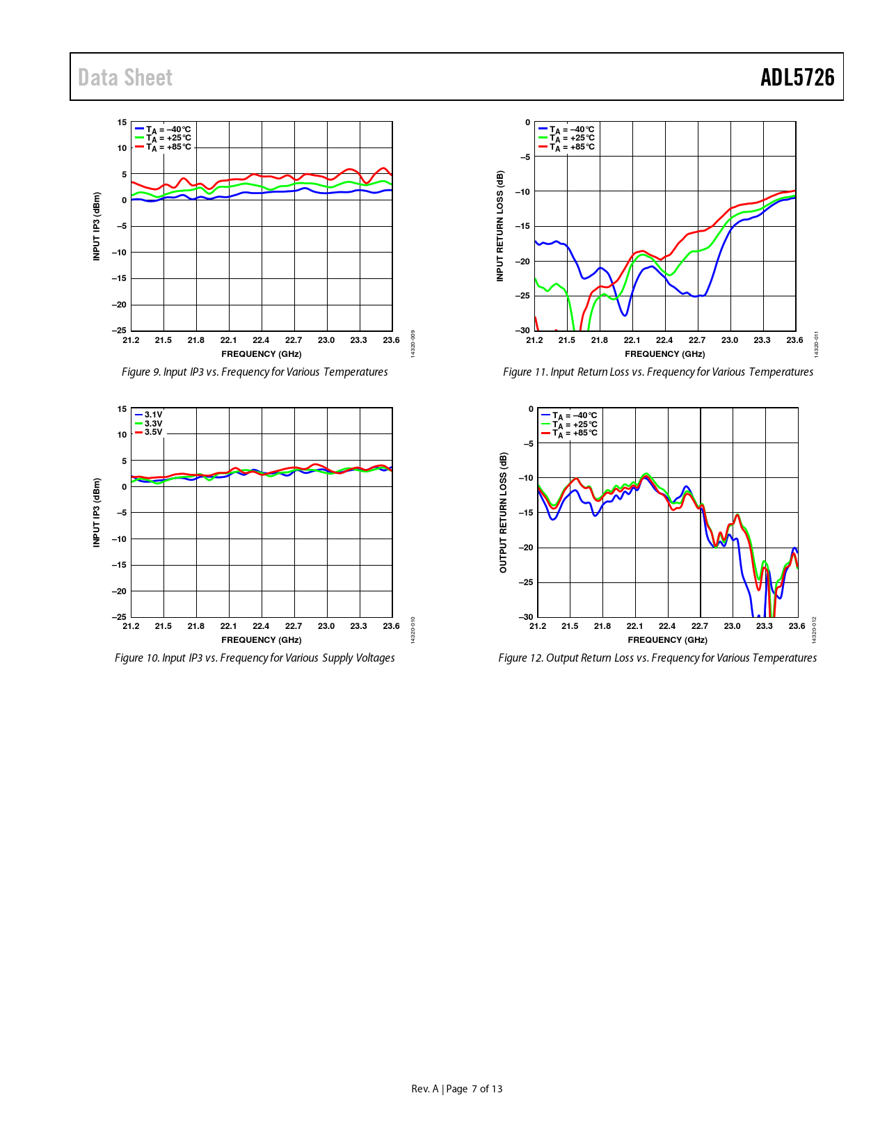 Data Sheet. ADL5726. TA = –40°C. TA = +25°C. TA = +85°C. B) d (. –10. Bm). d 3 ( P. –15. URN L T. INP. –20. –25. –30. 21.2. 21.5. 21.8. 22.1. 22.4. 22.7. 23.0