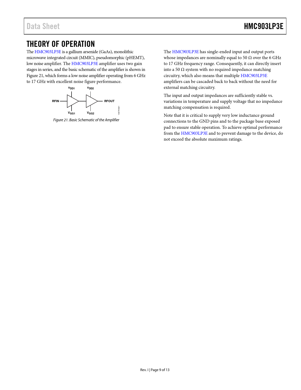 Páginas / Página13 / 9 — Data Sheet. HMC903LP3E. THEORY OF OPERATION. DD1. VDD2. RFIN. RFOUT. …