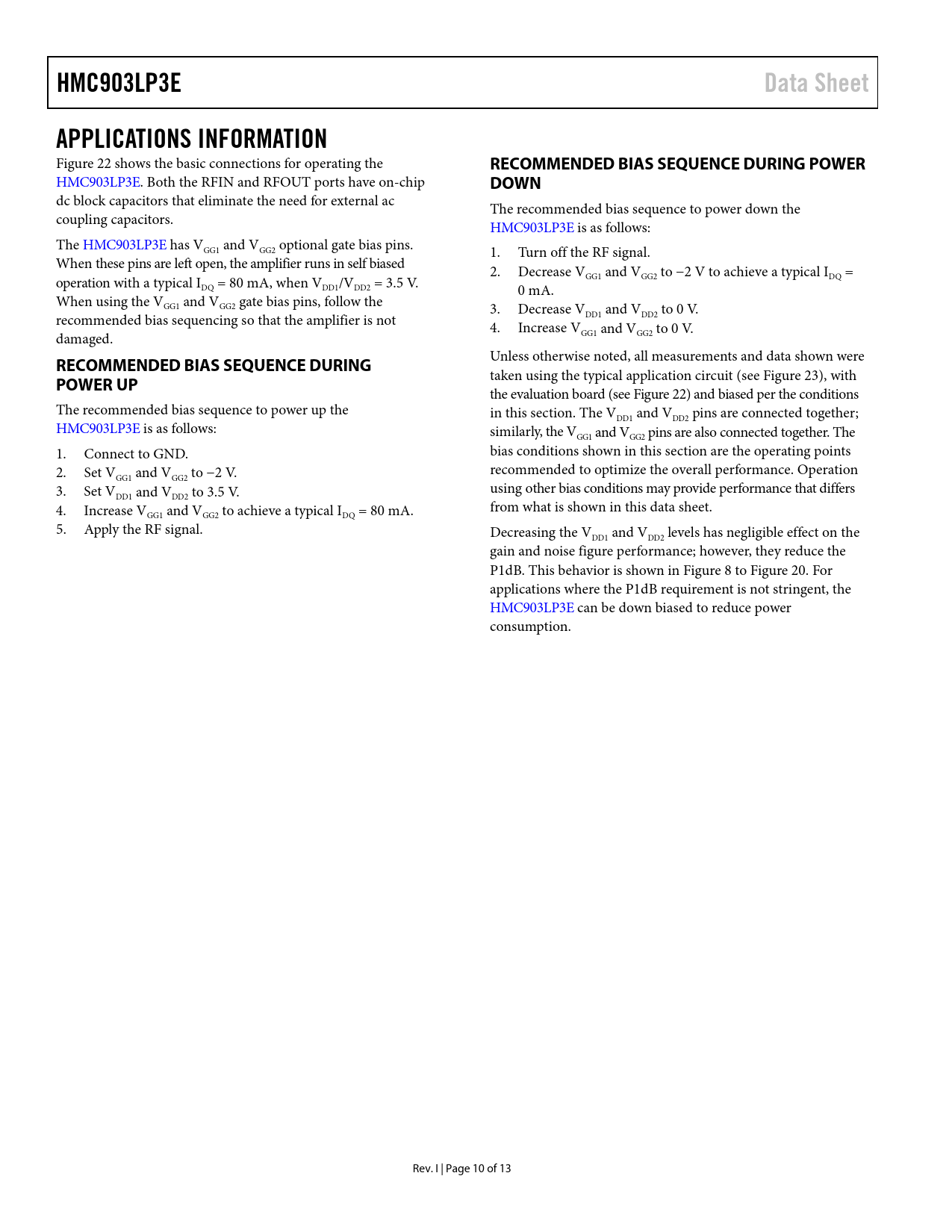 HMC903LP3E. Data Sheet. APPLICATIONS INFORMATION. RECOMMENDED BIAS SEQUENCE DURING POWER. DOWN. RECOMMENDED BIAS SEQUENCE DURING