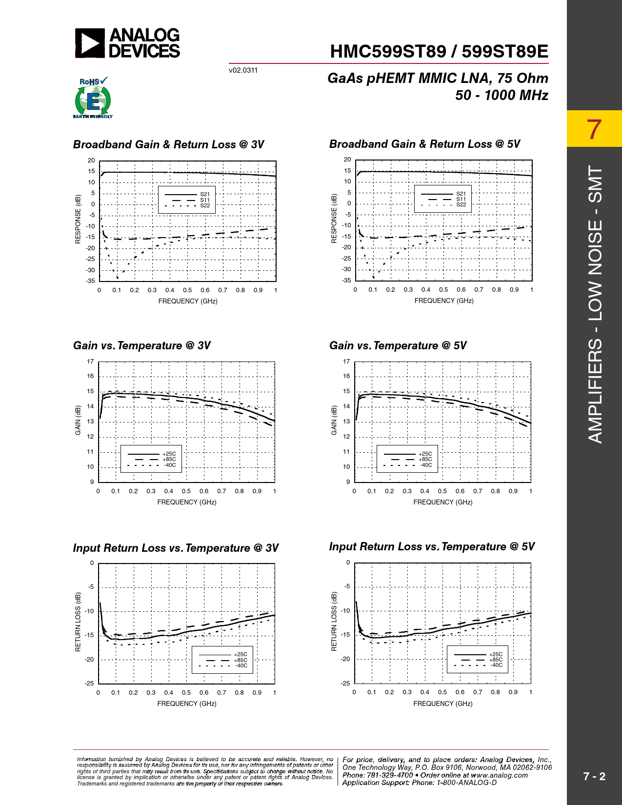 Páginas / Página8 / 2 — HMC599ST89 / 599ST89E. GaAs pHEMT MMIC LNA, 75 Ohm. 50 - 1000 MHz. …