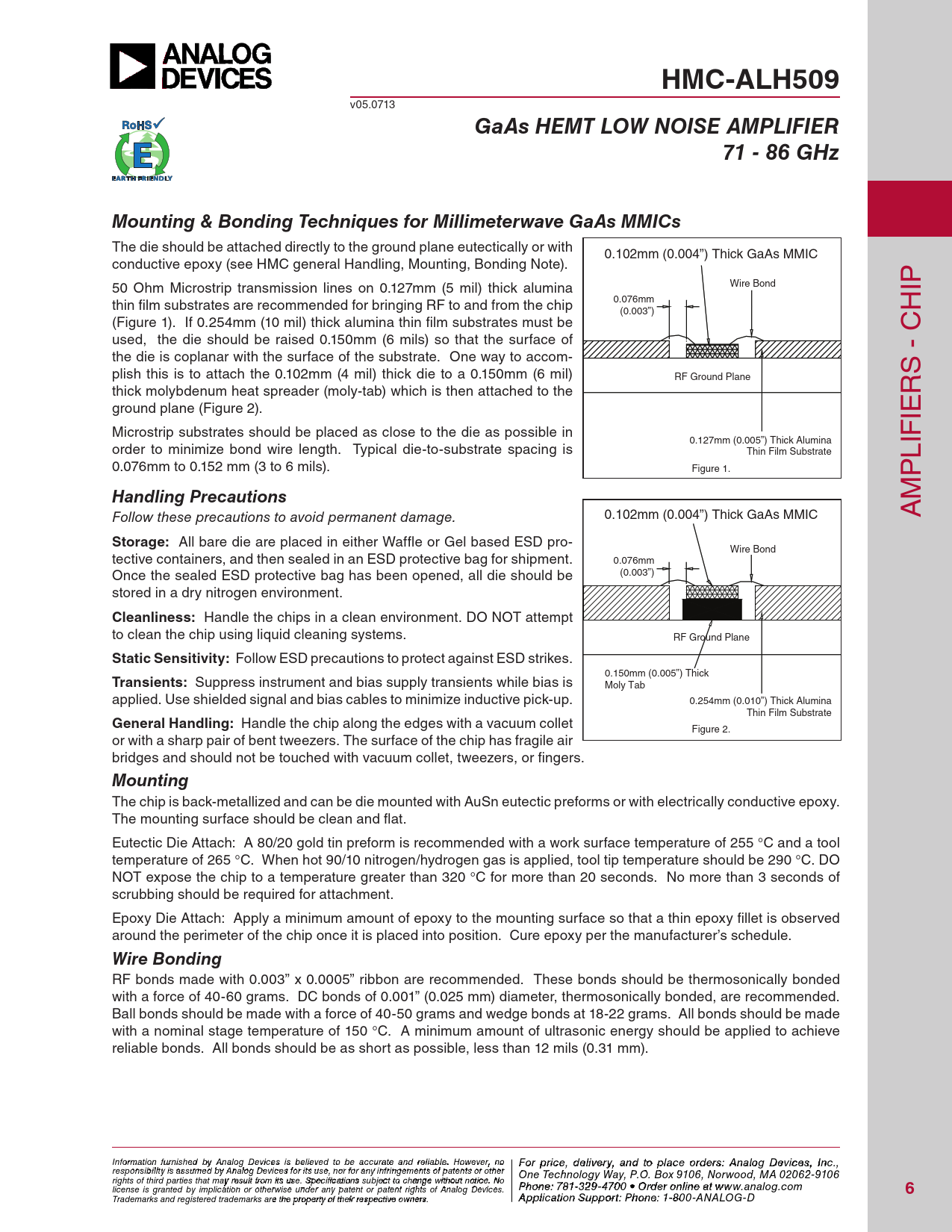 HMC-ALH509 GaAs HEMT LOW NOISE AMPLIFIER 71 - 86 GHz Mounting & Bonding Techniques for Millimeterwave GaAs MMICs