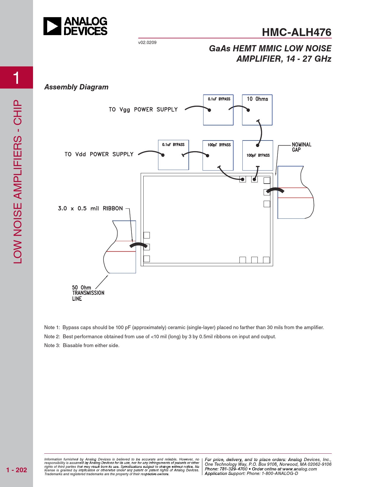 HMC-ALH476. GaAs HEMT MMIC LOW NOISE. AMPLIFIER, 14 - 27 GHz. Assembly Diagram. 1 - 202