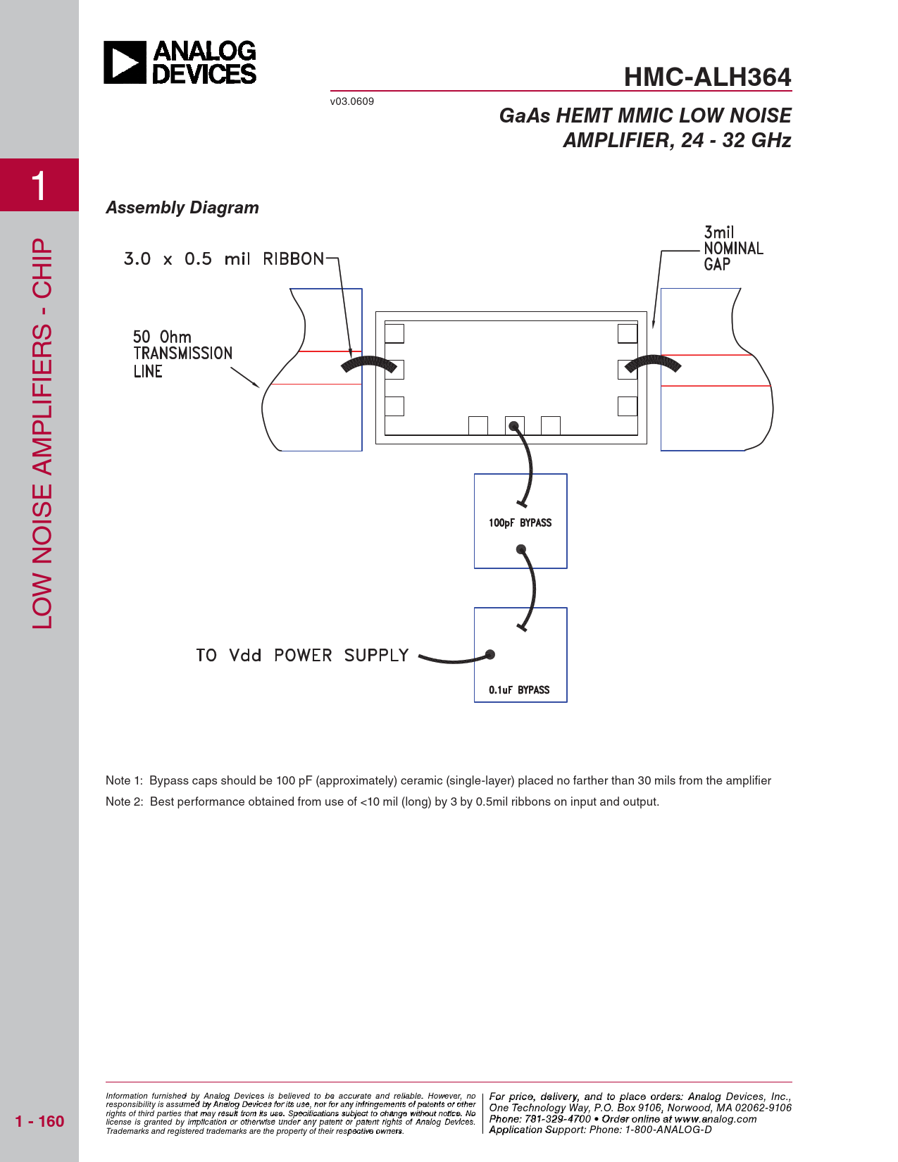 HMC-ALH364. GaAs HEMT MMIC LOW NOISE. AMPLIFIER, 24 - 32 GHz. Assembly Diagram. 1 - 160