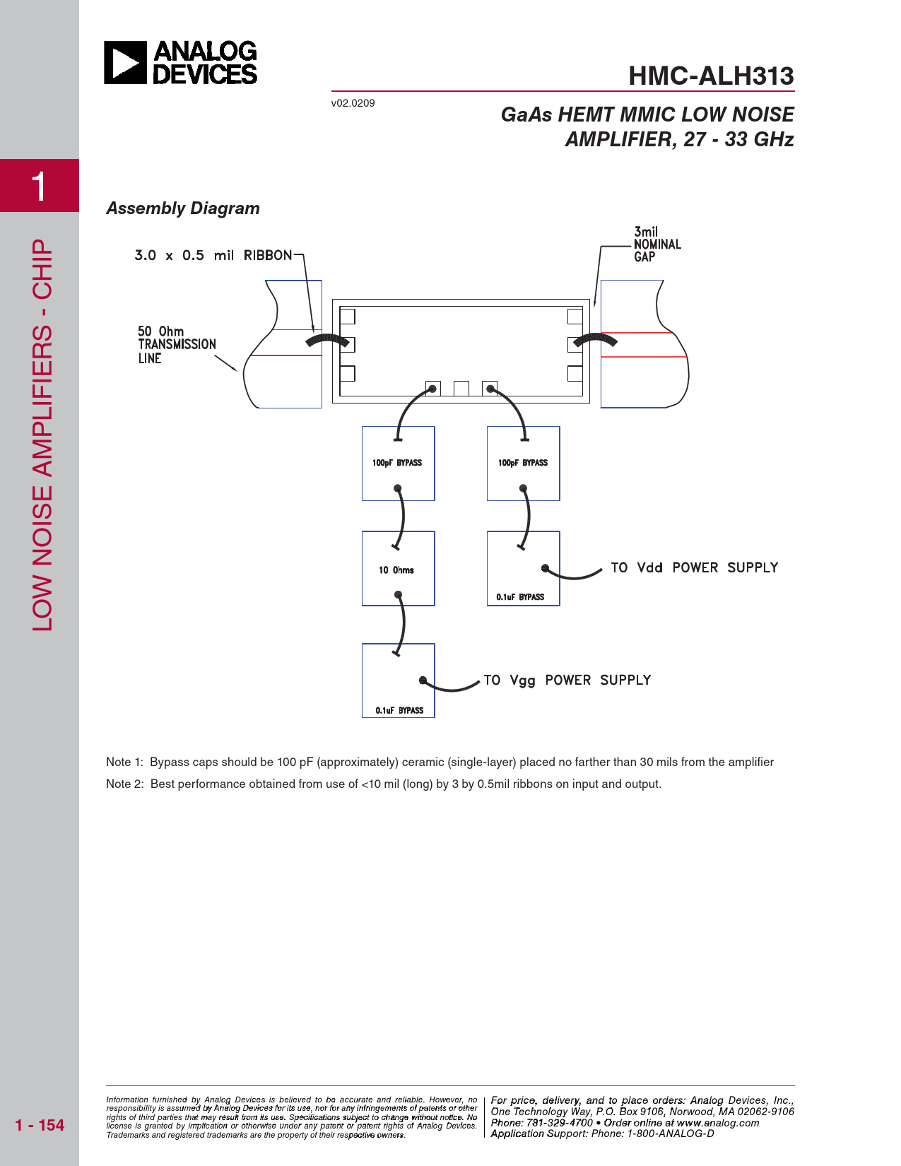 HMC-ALH313. GaAs HEMT MMIC LOW NOISE. AMPLIFIER, 27 - 33 GHz. Assembly Diagram. 1 - 154