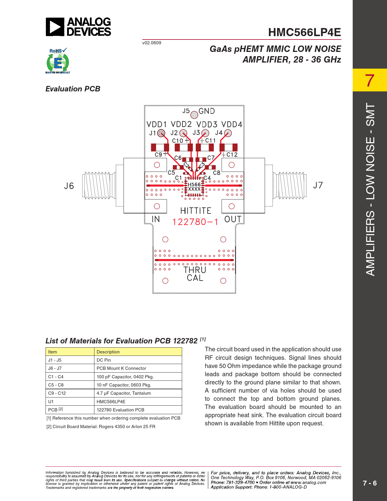 HMC566LP4E GaAs pHEMT MMIC LOW NOISE AMPLIFIER, 28 - 36 GHz Evaluation PCB List of Materials for Evaluation PCB 122782 [1]