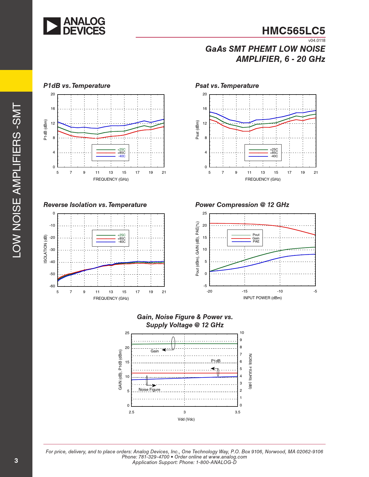 Páginas / Página6 / 3 — HMC565LC5. GaAs SMT PHEMT LOW NOISE. AMPLIFIER, 6 - 20 GHz. P1dB vs. …