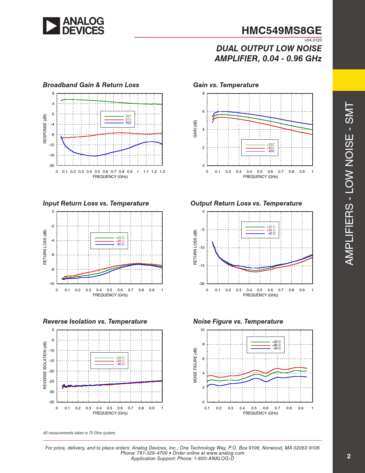 Páginas / Página8 / 2 — HMC549MS8GE. DUAL OUTPUT LOW NOISE. AMPLIFIER, 0.04 - 0.96 GHz. Broadband …