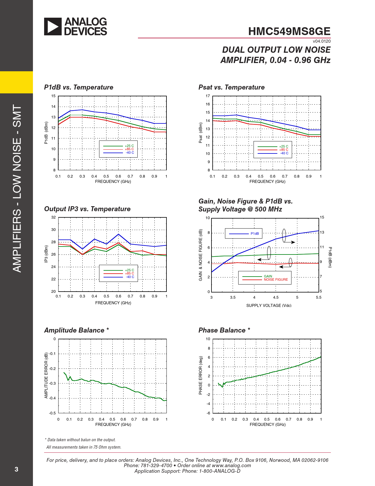 Páginas / Página8 / 3 — HMC549MS8GE. DUAL OUTPUT LOW NOISE. AMPLIFIER, 0.04 - 0.96 GHz. P1dB vs. …