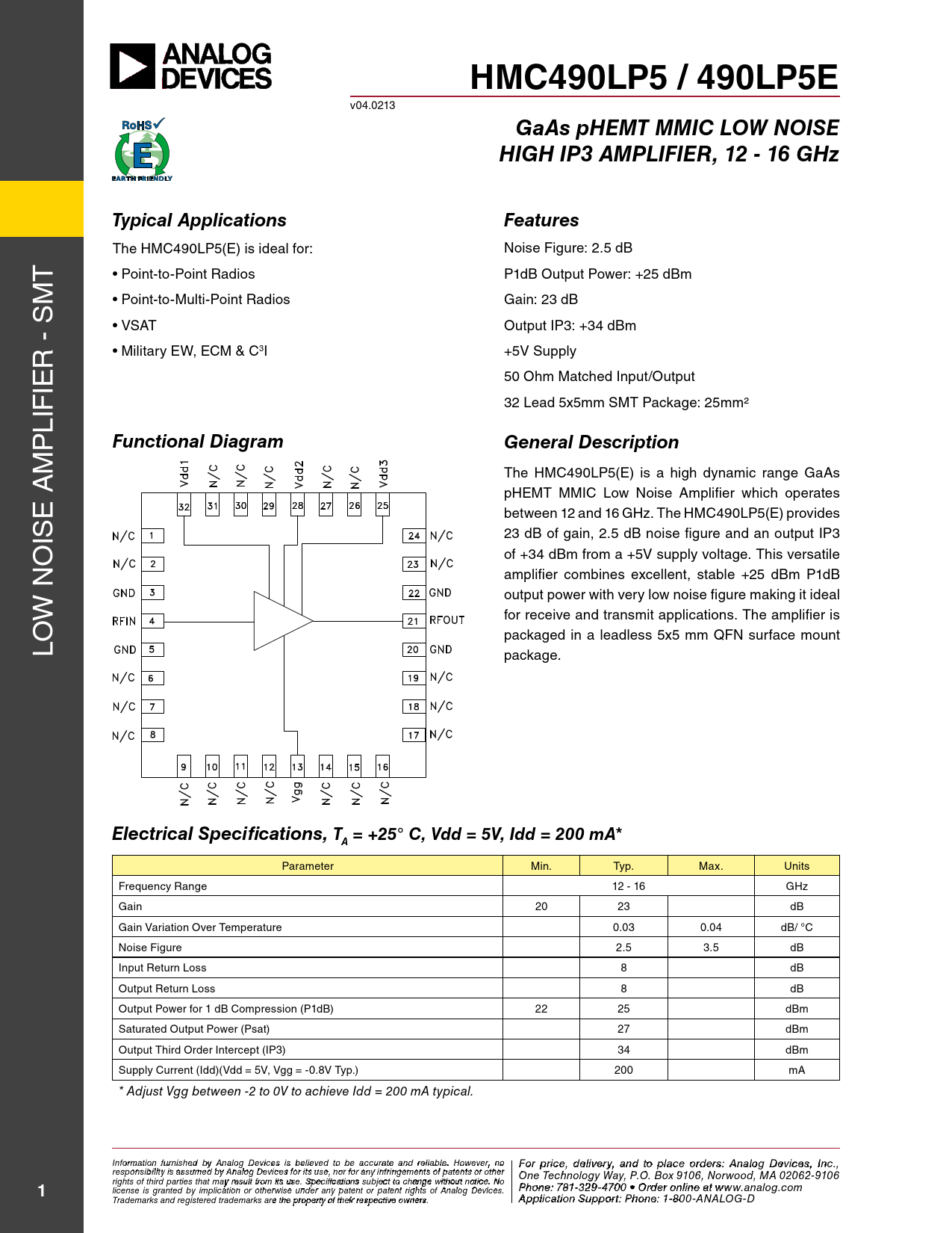 Datasheet HMC490LP5, 490LP5E Analog Devices