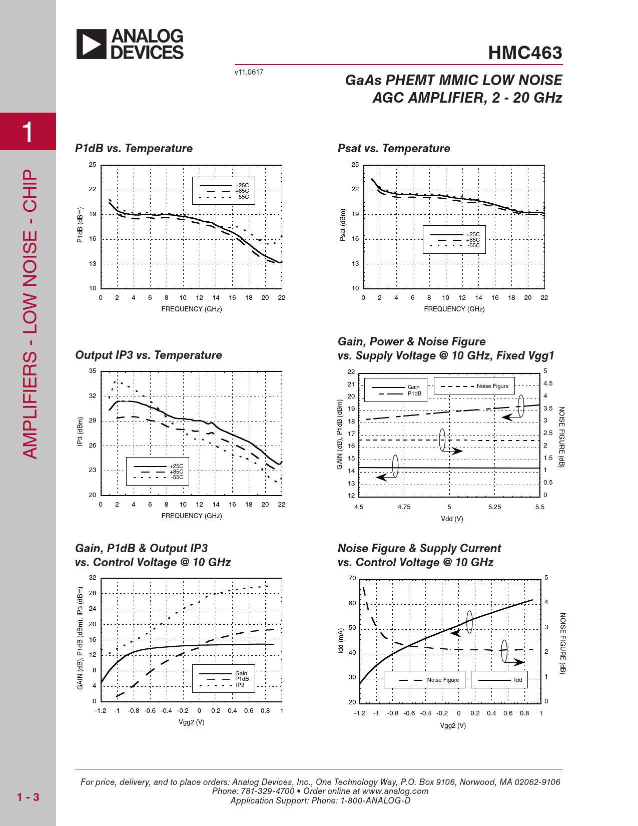 Páginas / Página8 / 3 — HMC463. GaAs PHEMT MMIC LOW NOISE. AGC AMPLIFIER, 2 - 20 GHz. P1dB vs. …