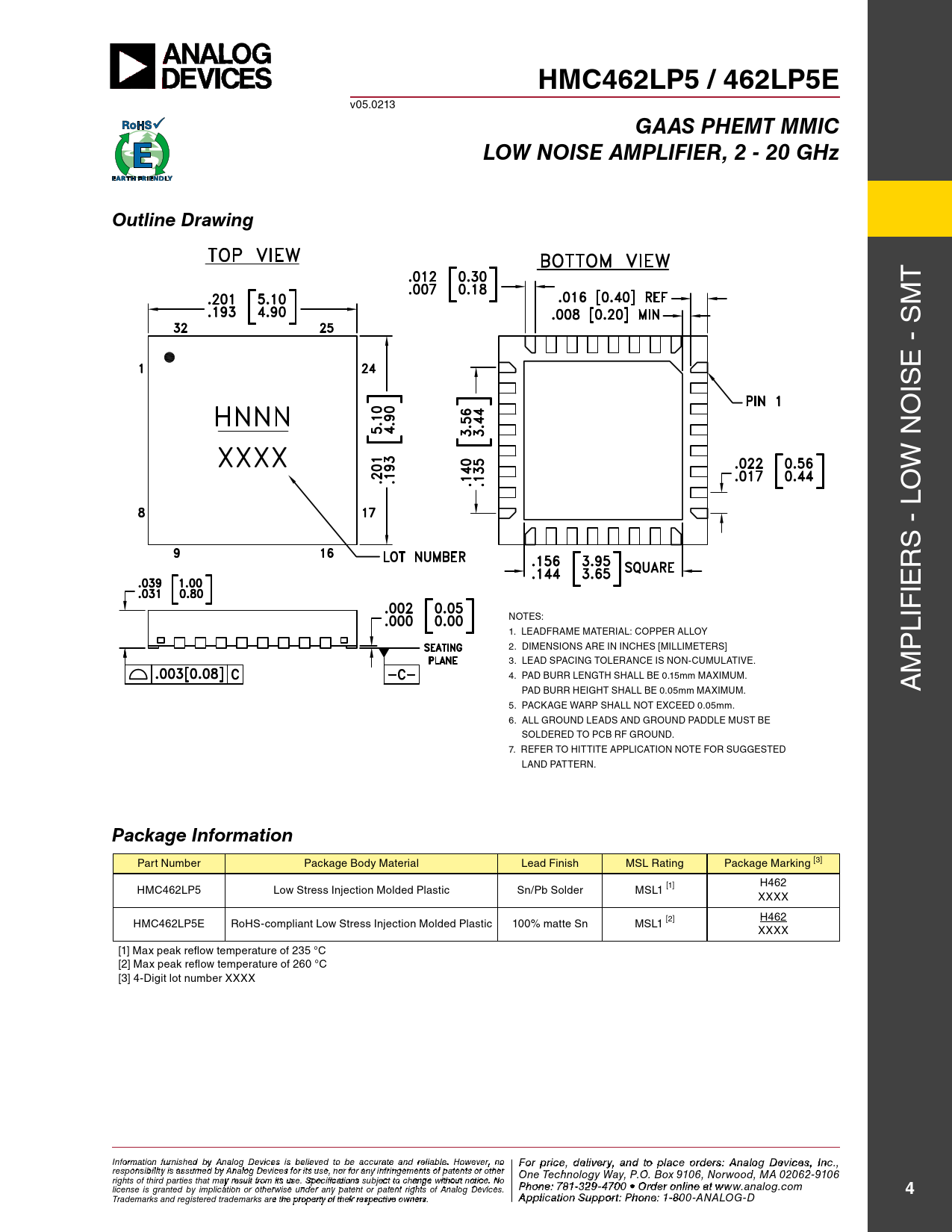 Datasheet HMC462LP5, 462LP5E (Analog Devices) - 4
