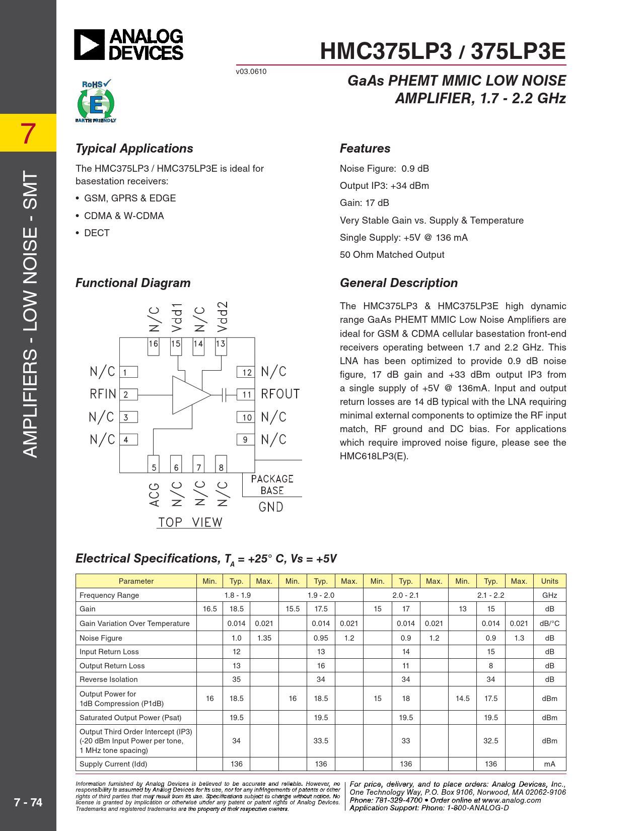 Datasheet HMC375LP3, 375LP3E (Analog Devices)