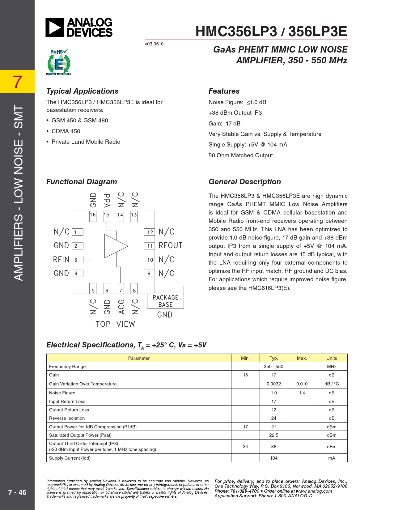 Datasheet HMC356LP3, 356LP3E Analog Devices