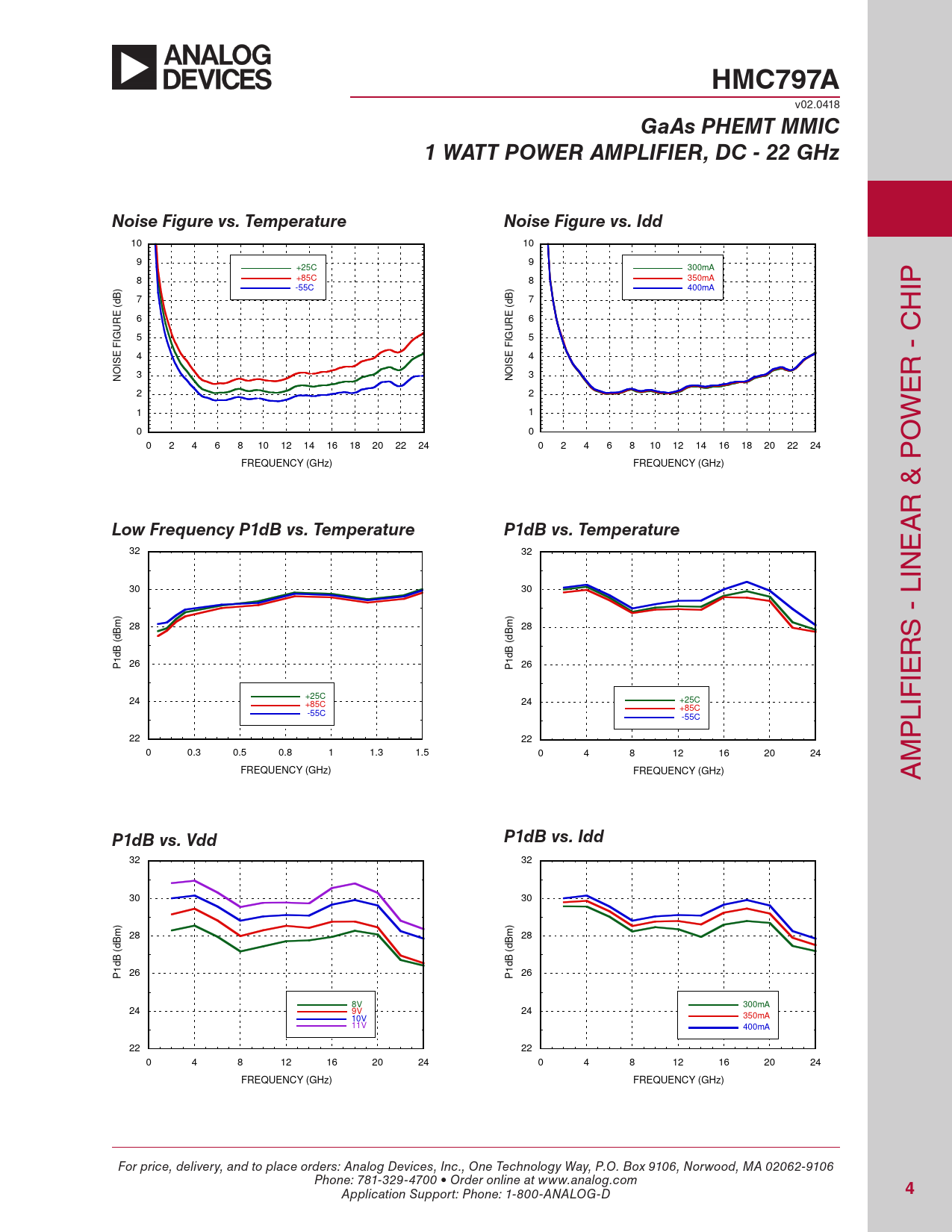 Páginas / Página16 / 4 — HMC797A. GaAs PHEMT MMIC. 1 WATT POWER AMPLIFIER, DC - 22 GHz. Noise …