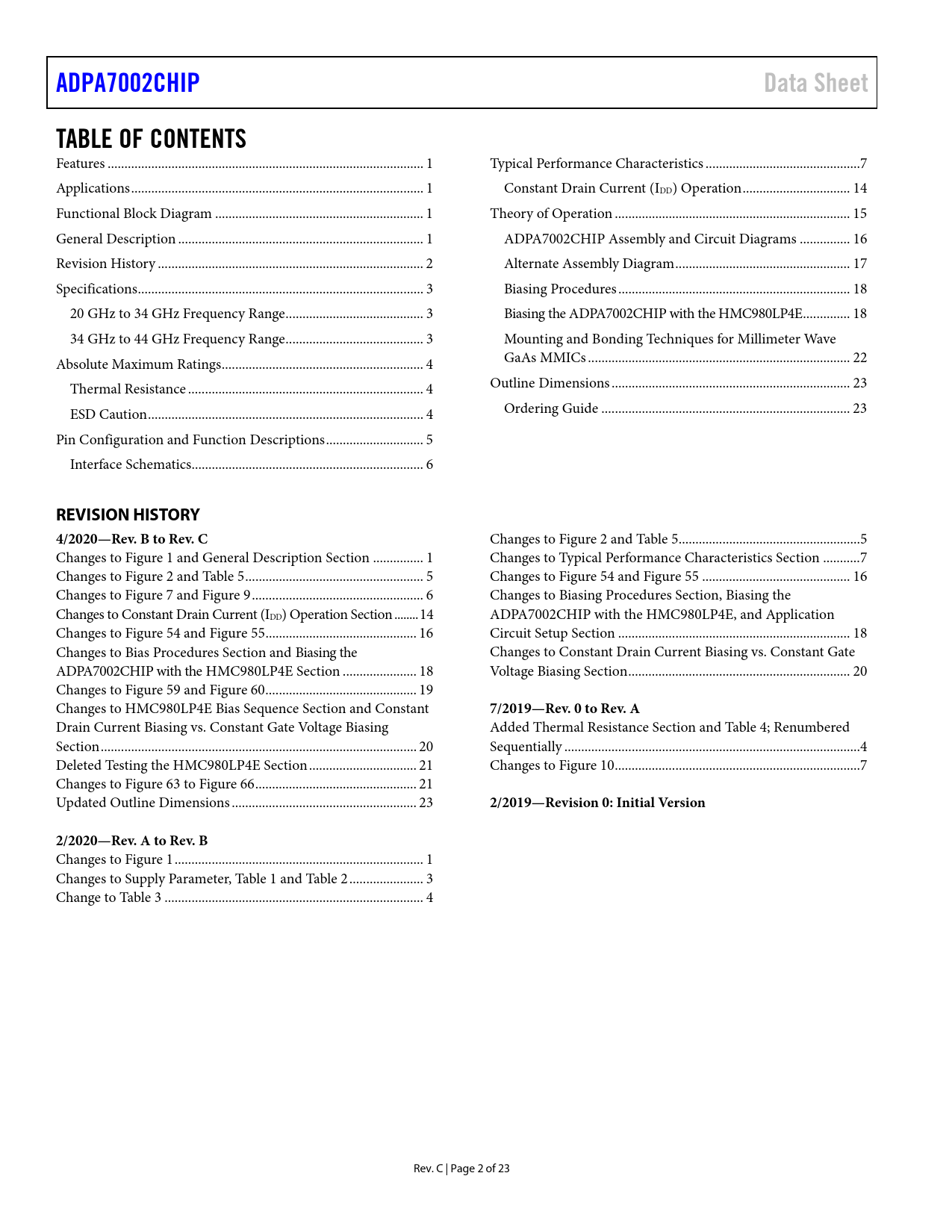 Páginas / Página23 / 2 — ADPA7002CHIP. Data Sheet. TABLE OF CONTENTS. REVISION HISTORY 4/2020—Rev. …
