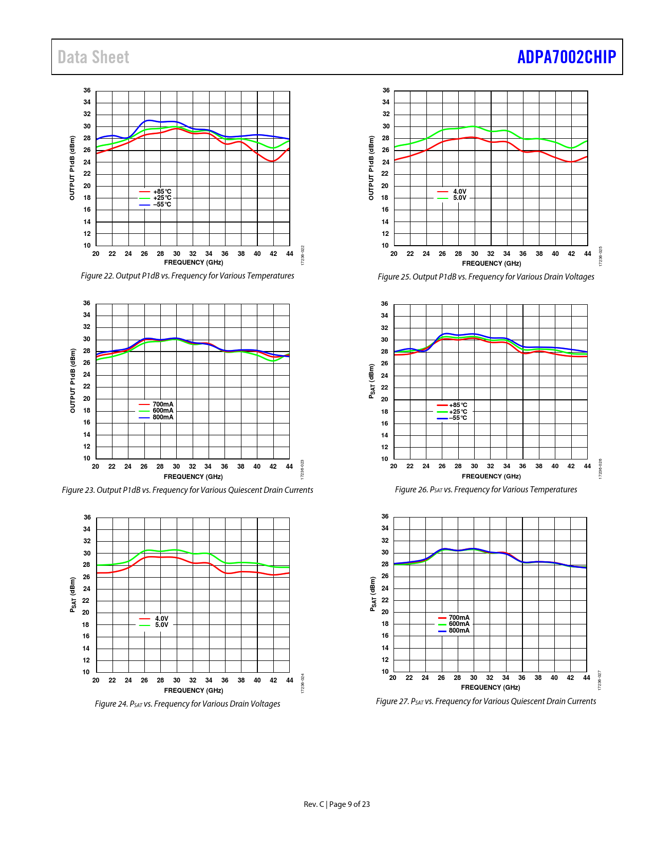 17236- Figure 22. Output P1dB vs. Frequency for Various Temperatures Figure 25. Output P1dB vs. Frequency for Various Drain Voltages
