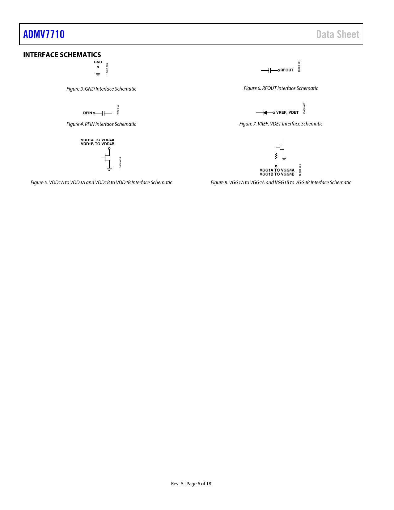 | Páginas / Página | 18 / 6 — ADMV7710. Data Sheet. INTERFACE SCHEMATICS. GND. RFOUT. RFIN. VREF, VDET. … |
