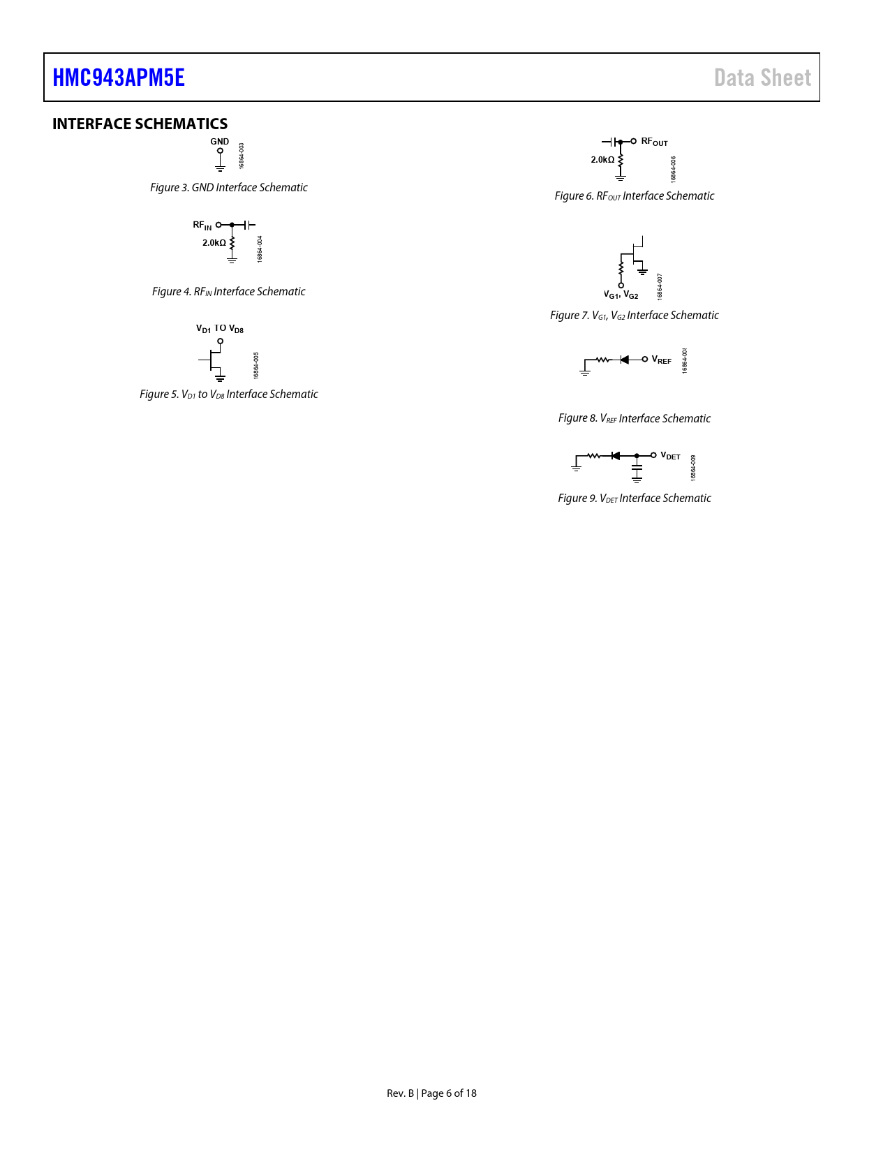 | Páginas / Página | 18 / 6 — HMC943APM5E. Data Sheet. INTERFACE SCHEMATICS. GND. RFOUT. 2.0kΩ. RFIN. … |