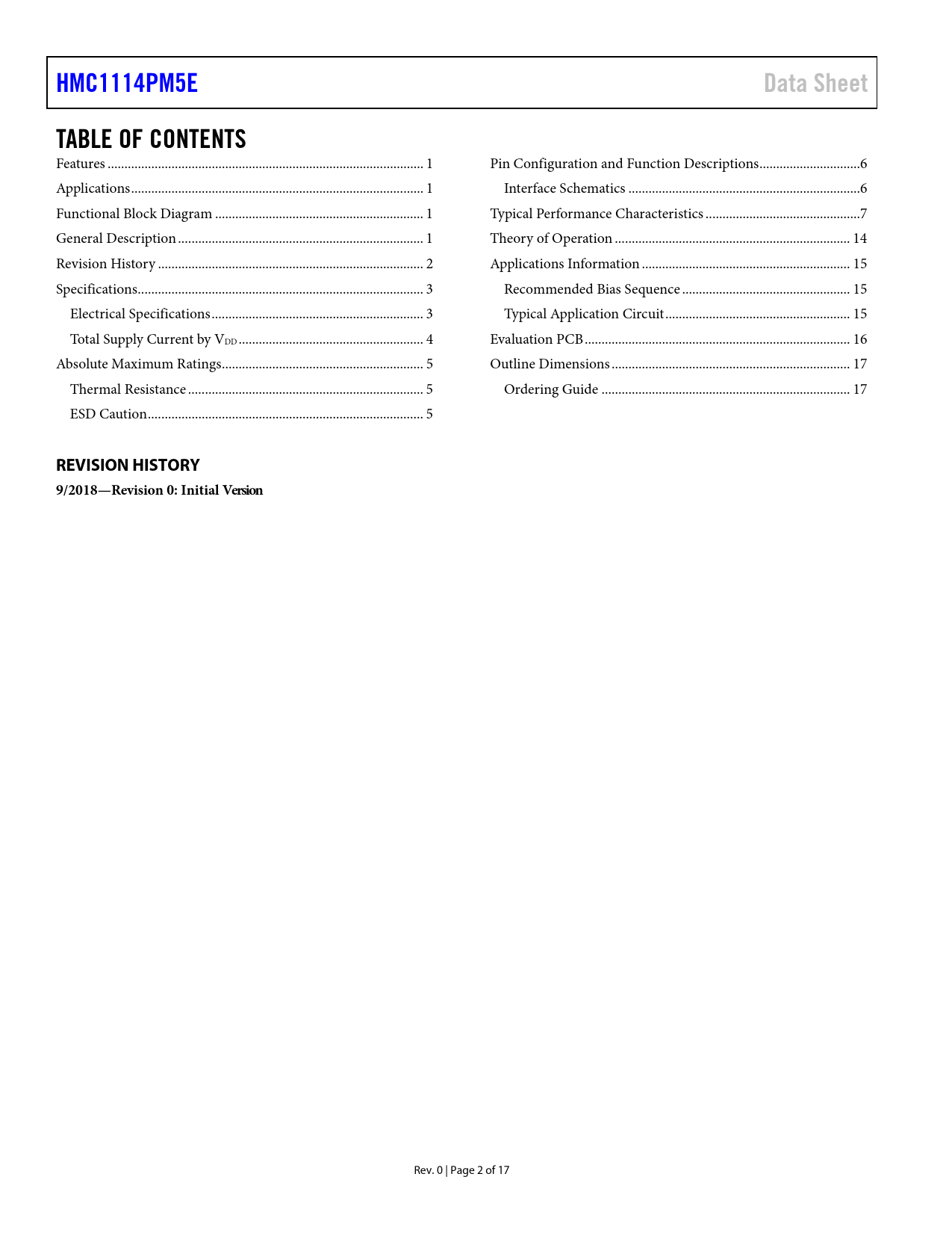 Páginas / Página17 / 2 — HMC1114PM5E. Data Sheet. TABLE OF CONTENTS. REVISION HISTORY …