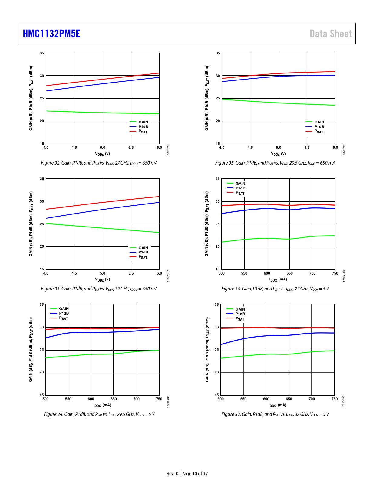 HMC1132PM5E. Data Sheet. Bm). , P. B (. N (. GAIN. P1dB. SAT. PSAT. 4.0. 4.5. 5.0. 5.5. 6.0. VDDx (V). DDx (V). GAIN P1dB PSAT. 500. 550. 600. 650. 700. 750. DDQ (mA)