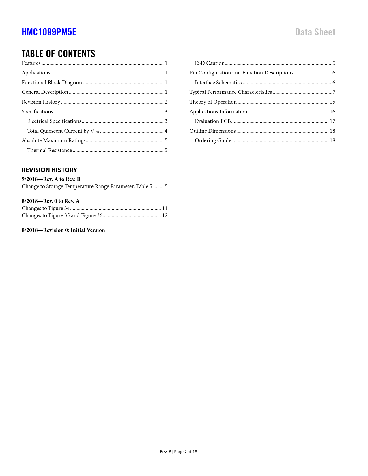 Páginas / Página18 / 2 — HMC1099PM5E. Data Sheet. TABLE OF CONTENTS. REVISION HISTORY 9/2018—Rev. …