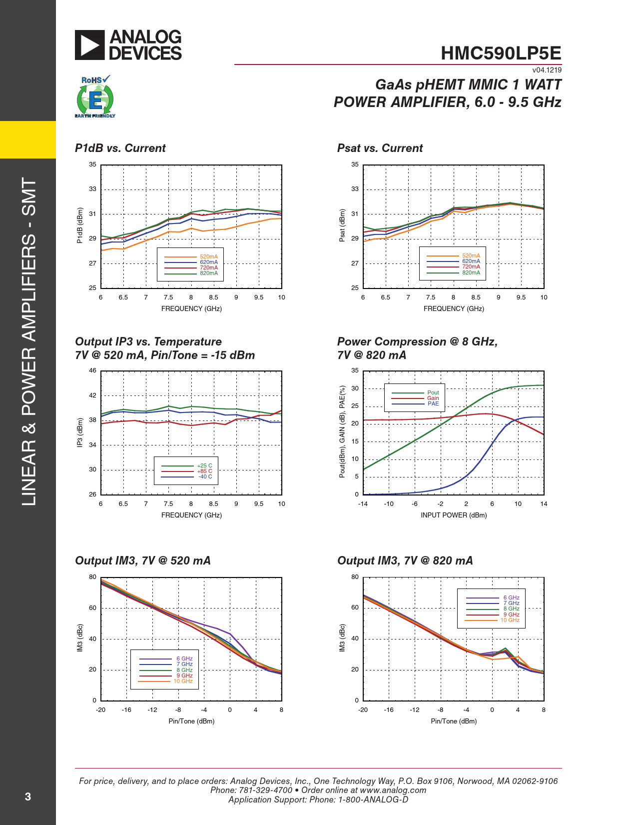 HMC590LP5E GaAs pHEMT MMIC 1 WATT POWER AMPLIFIER, 6.0 - 9.5 GHz P1dB vs Current Psat vs Current