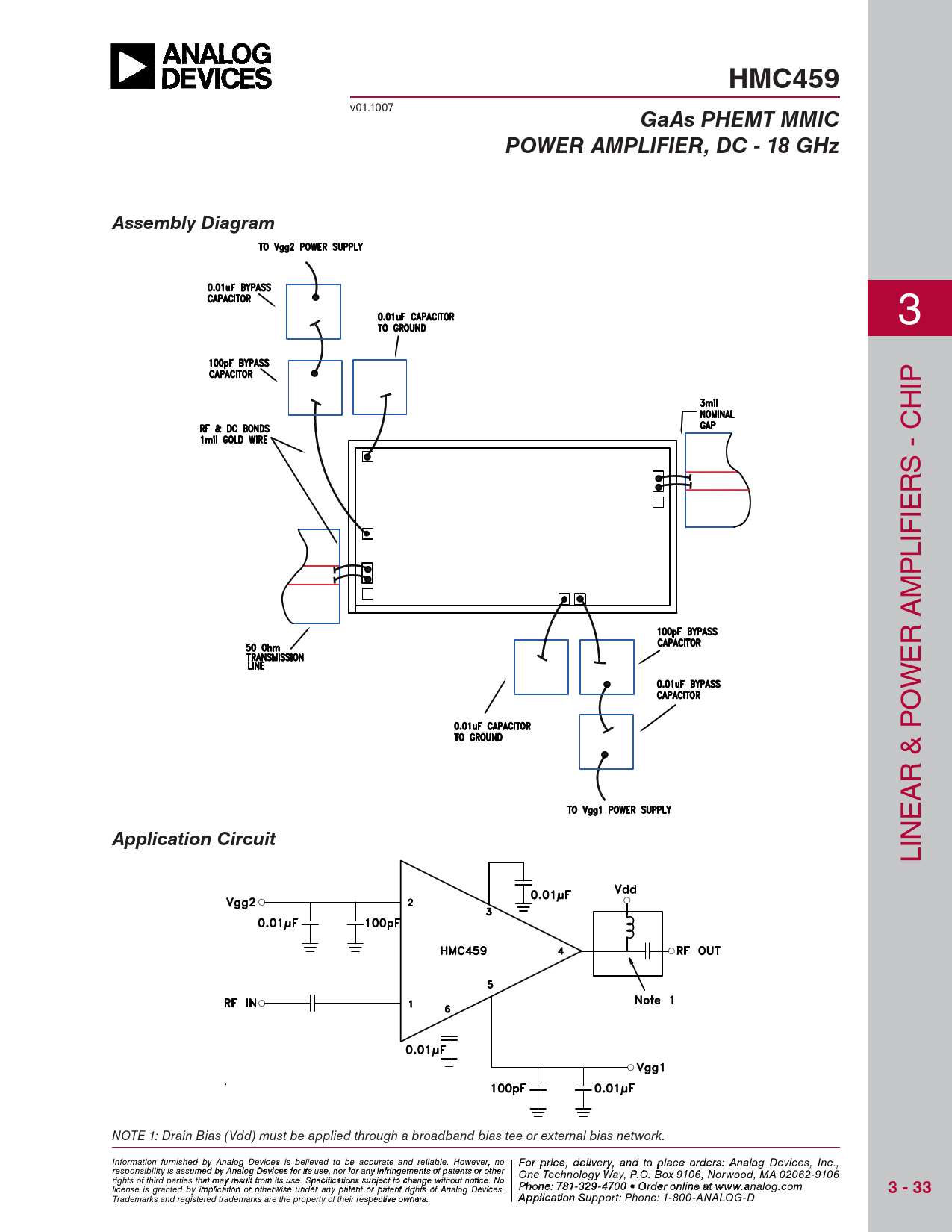 HMC459. GaAs PHEMT MMIC. POWER AMPLIFIER, DC - 18 GHz. Assembly Diagram. Application Circuit. 3 - 33