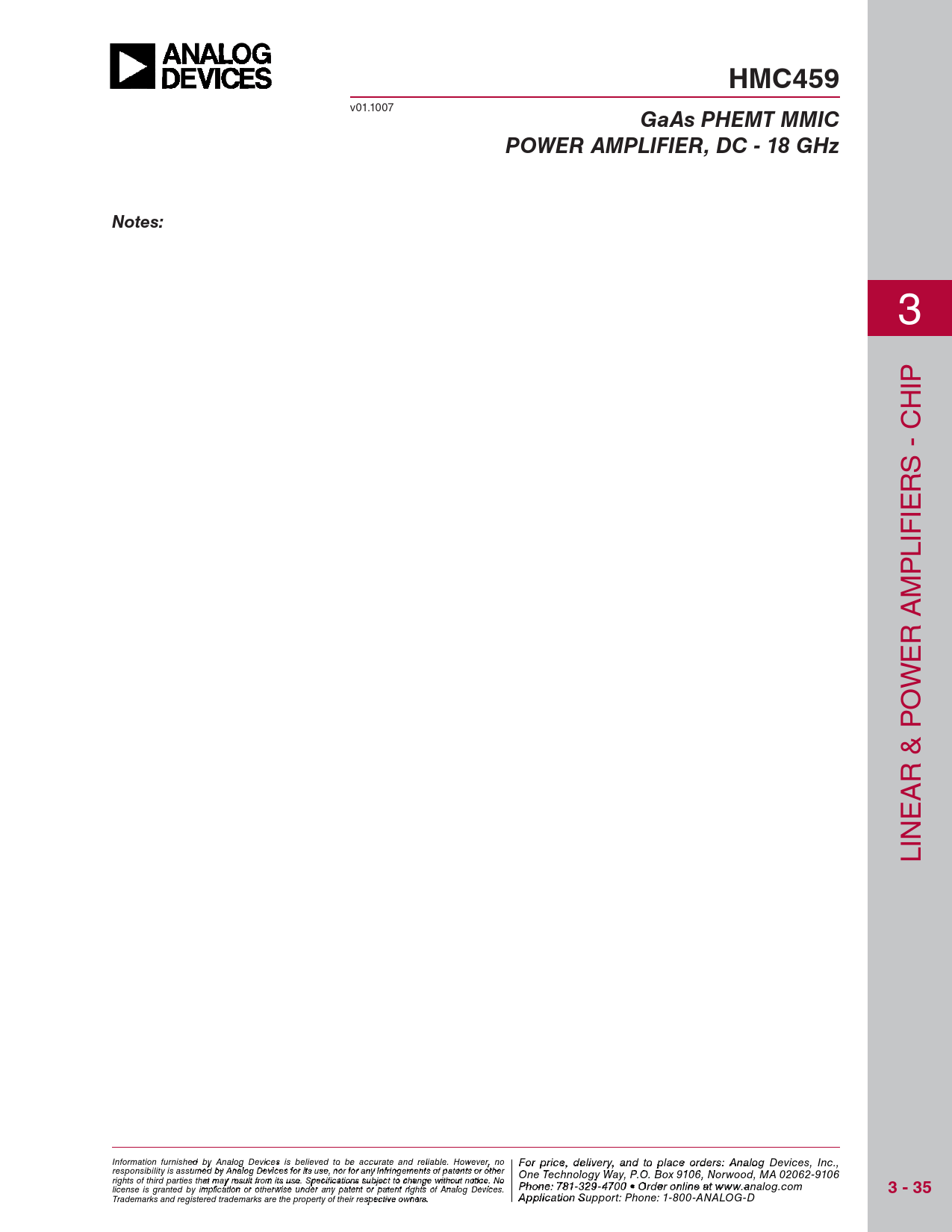 HMC459. GaAs PHEMT MMIC. POWER AMPLIFIER, DC - 18 GHz. Notes:. 3 - 35