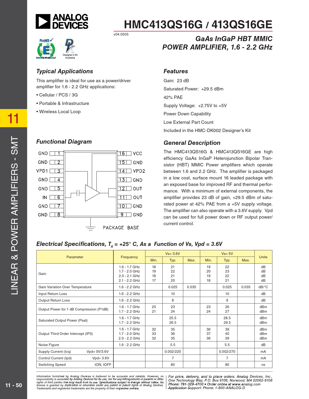 Datasheet HMC413QS16G, 413QS16GE Analog Devices