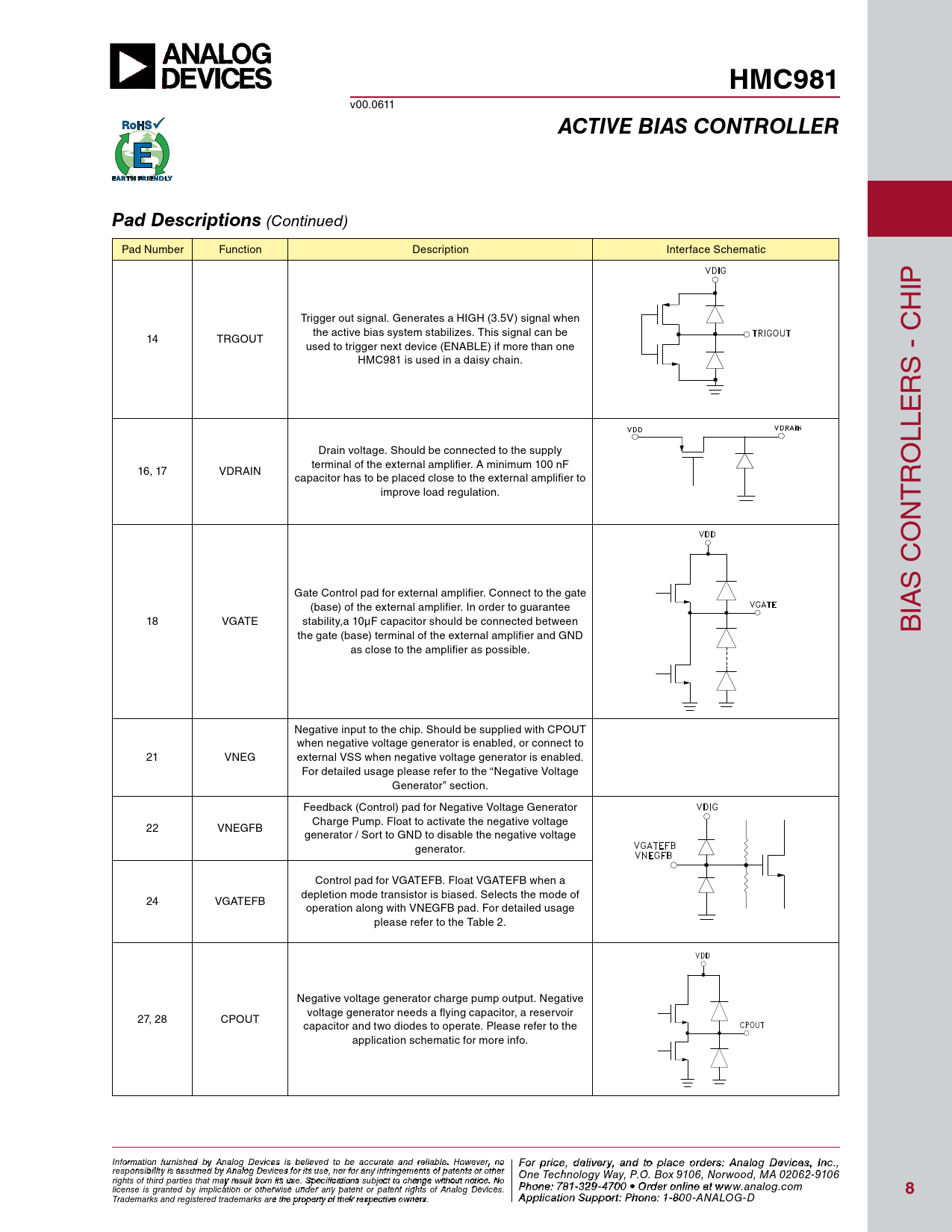 HMC981. ACTIVE BIAS CONTROLLER. Pad Descriptions