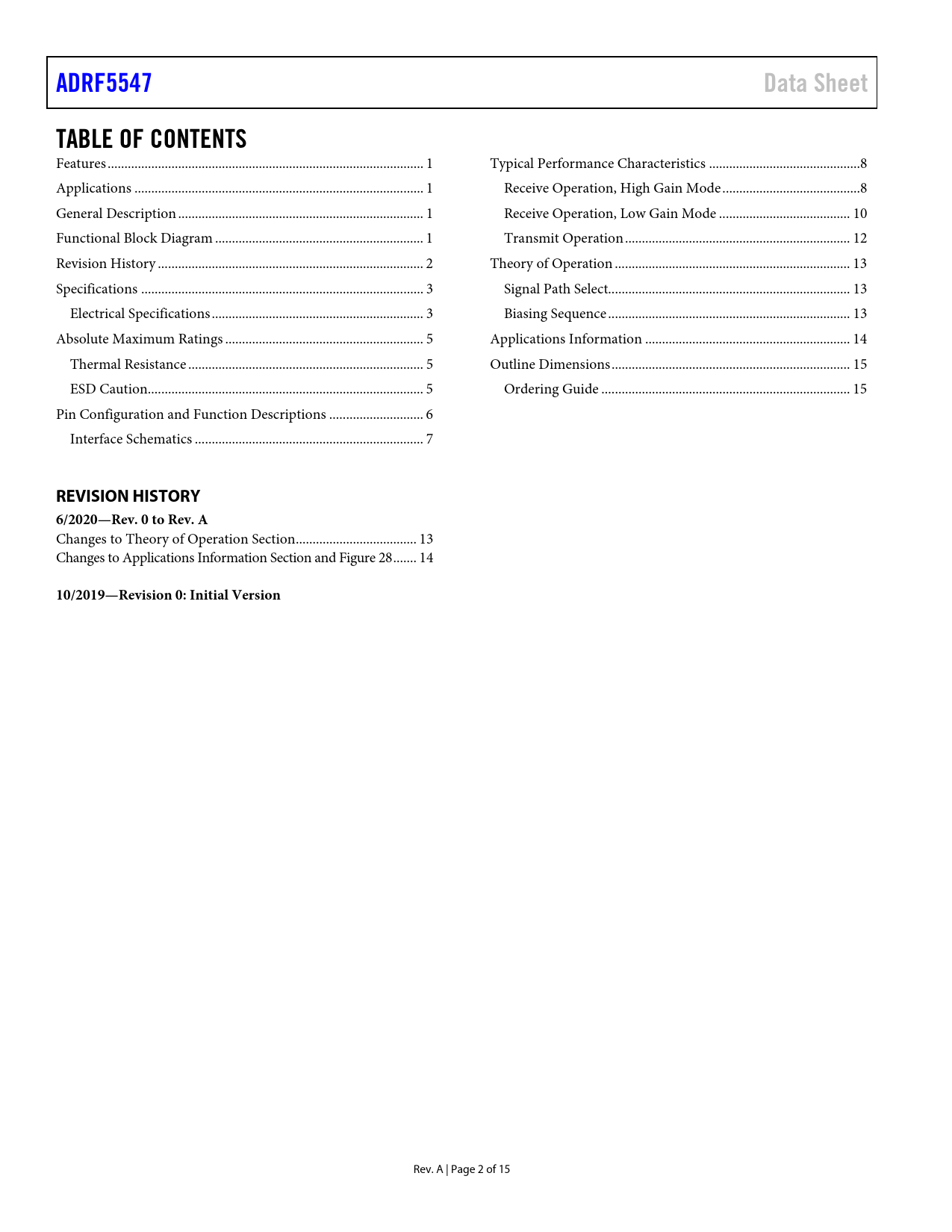 Páginas / Página15 / 2 — ADRF5547. Data Sheet. TABLE OF CONTENTS. REVISION HISTORY 6/2020—Rev. 0 …