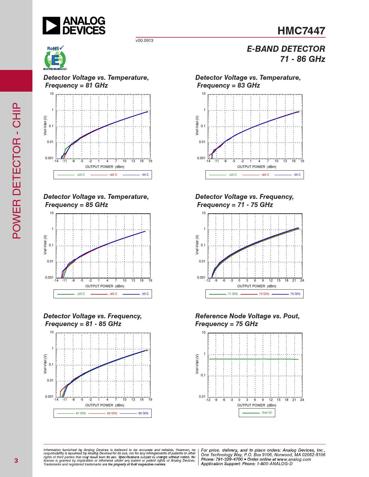 HMC7447. E-BAND DETECTOR. 71 - 86 GHz. Detector Voltage vs. Temperature,. Frequency = 81 GHz. Frequency = 83 GHz