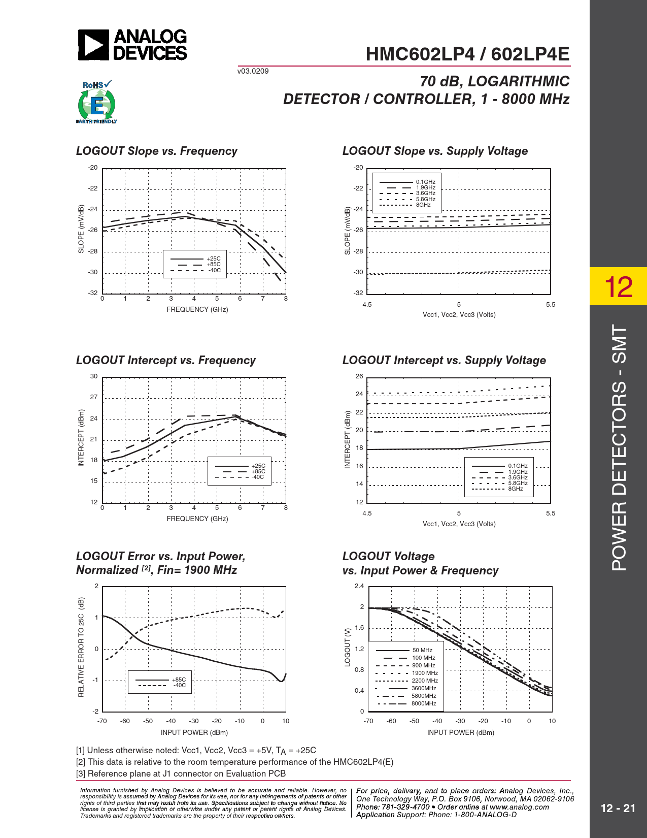 HMC602LP4 / 602LP4E. 70 dB, LOGARITHMIC. DETECTOR / CONTROLLER, 1 - 8000 MHz. LOGOUT Slope vs. Frequency